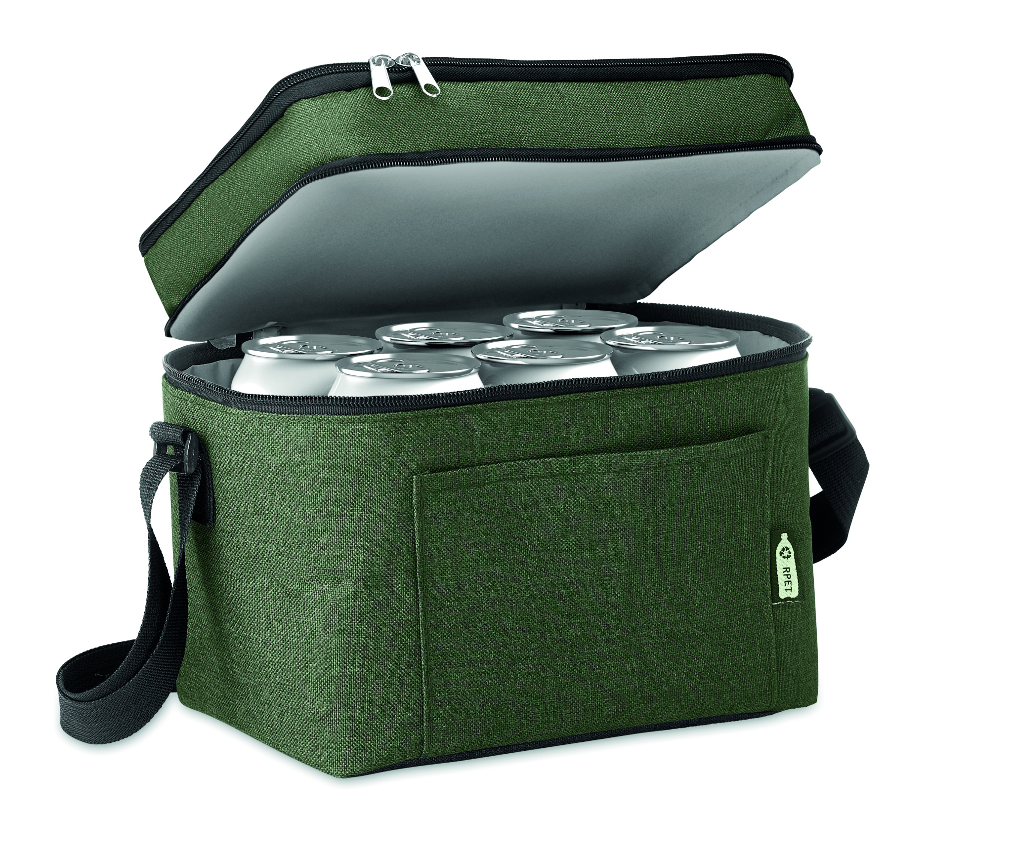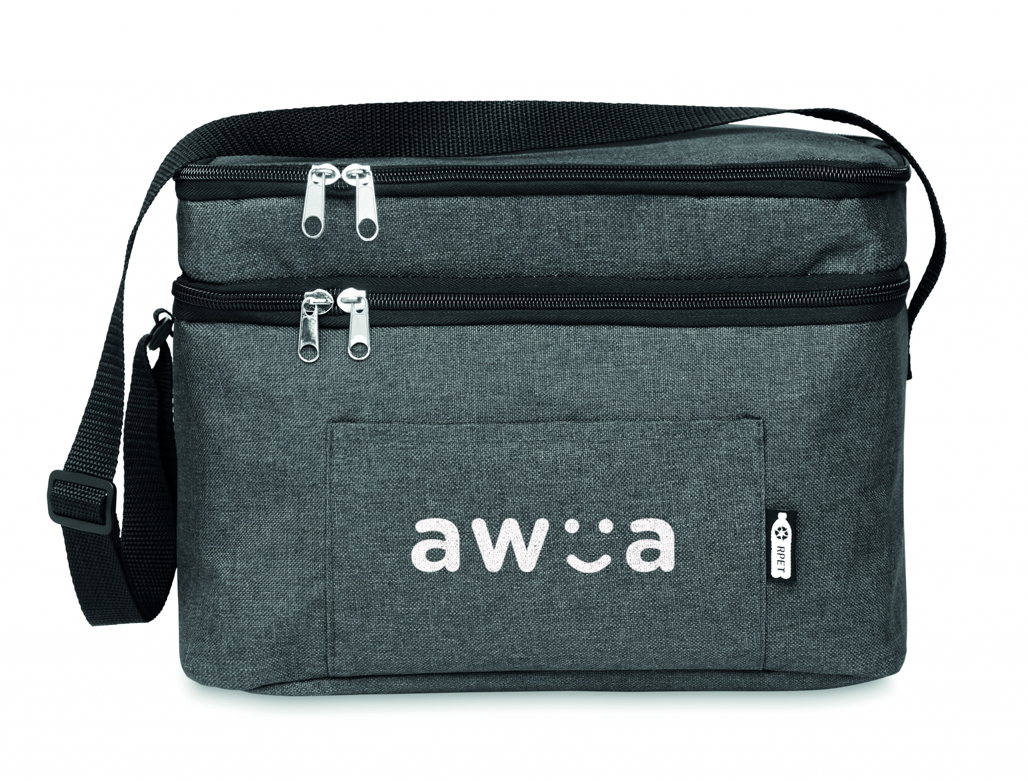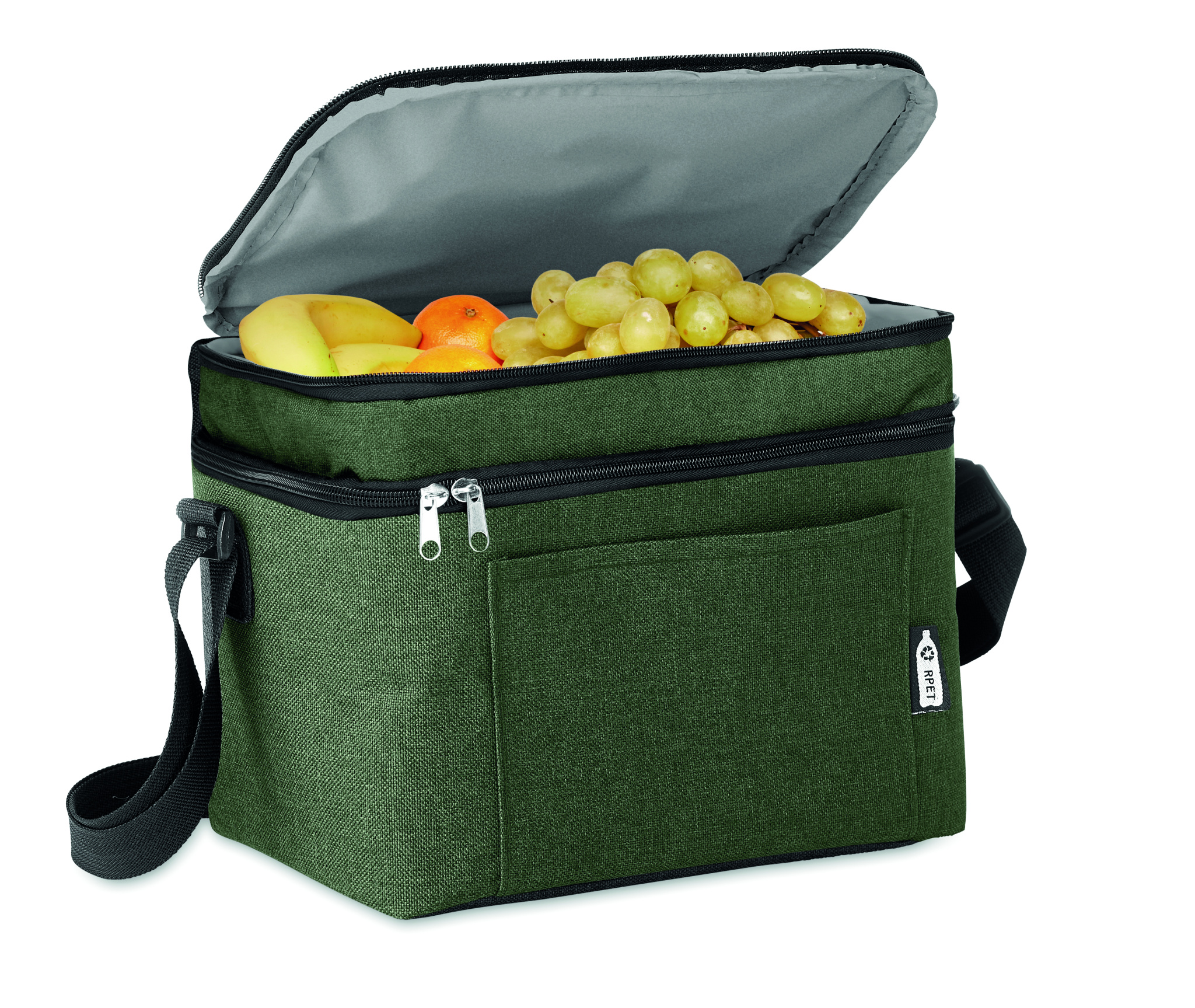 2-tooniline 600D RPET 2 sektsiooni ja PEVA voodriga külmakott. Reguleeritav õlarihm ja esitasku. Isolatsioonimaterjal: 0,15mm PEVA + 3mm vaht.