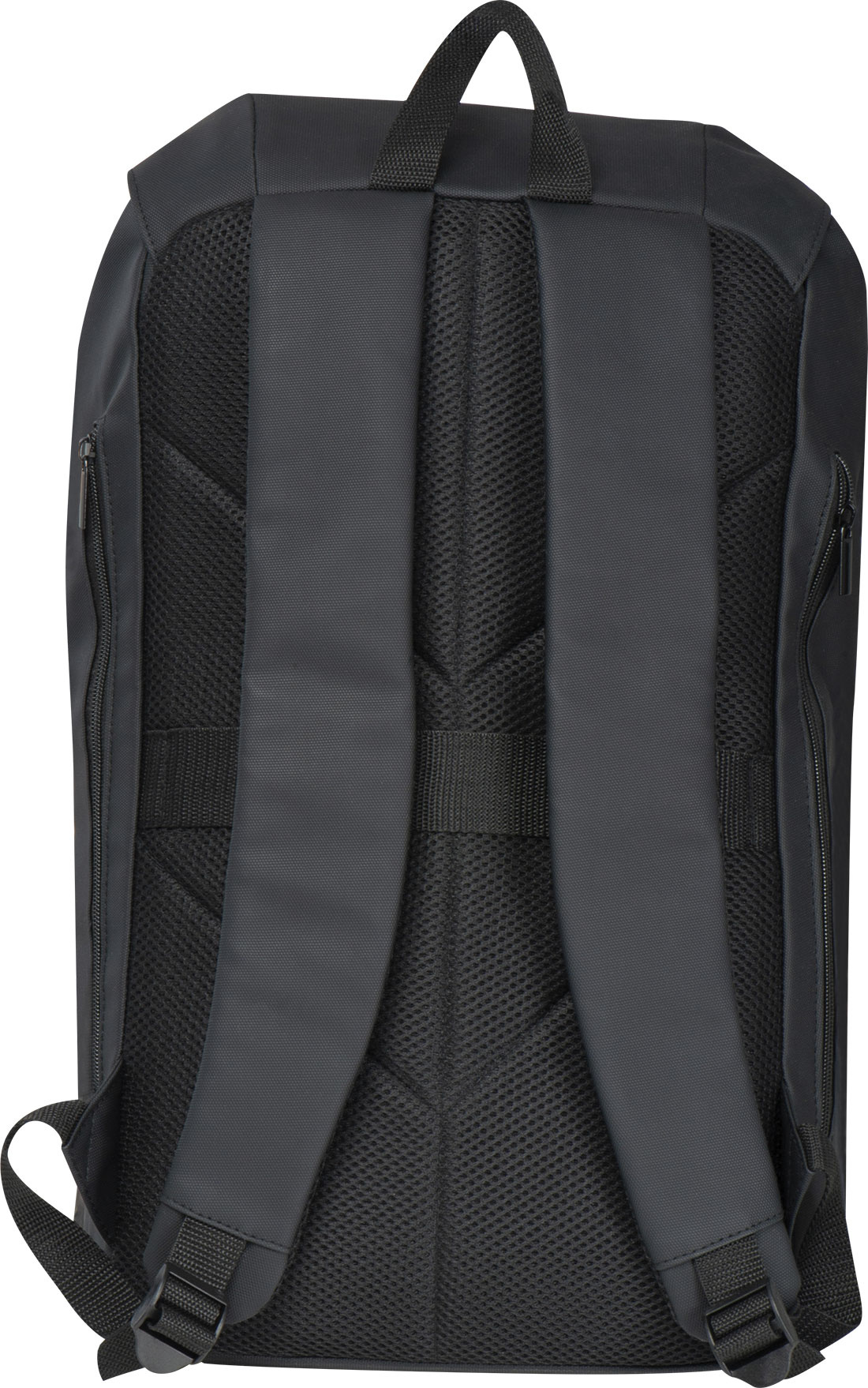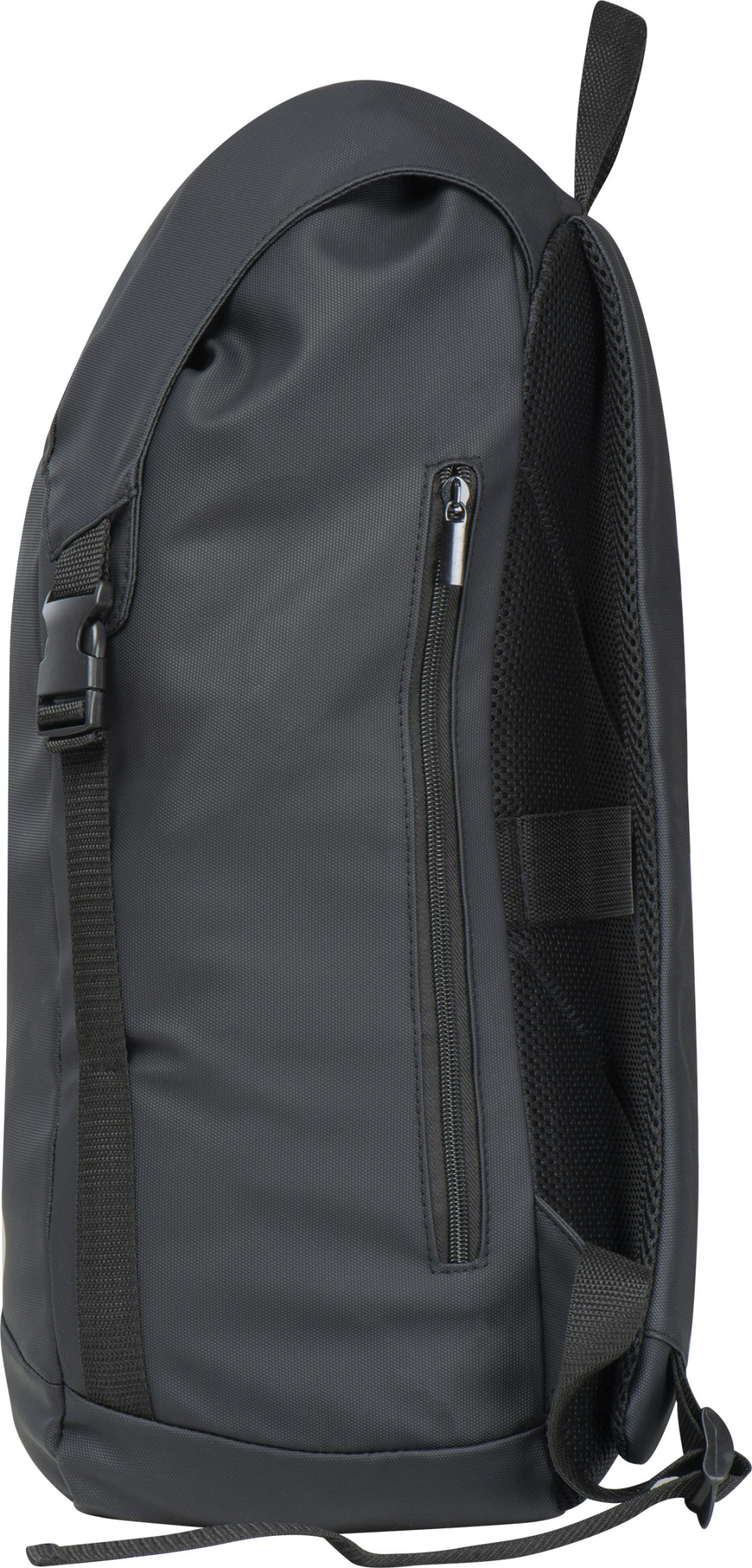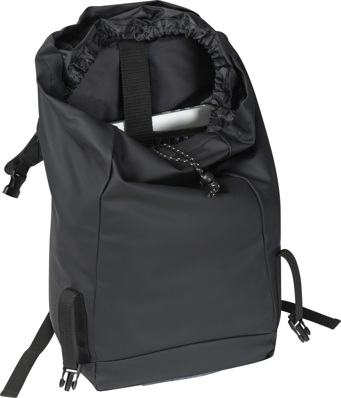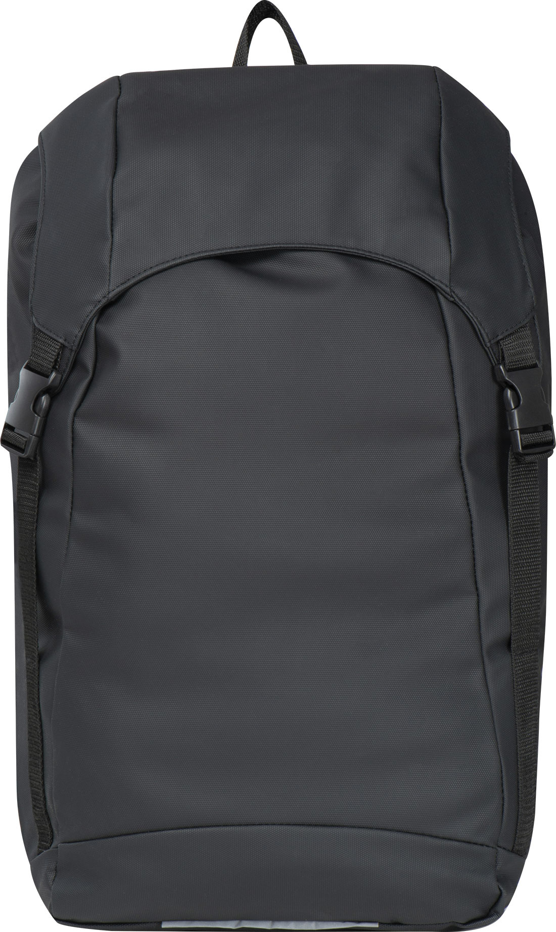 Suur polüesterseljakott vetthülgava PU-kattega. Sellel on avar põhisahtel sülearvuti varruka ja polsterdatud seljaosaga, samuti kaks lukuga taskut paremal ja vasakul välisküljel. See sisaldab nööriga kinni ja klappi, mis hoiab sisu vihma ajal kuivana.