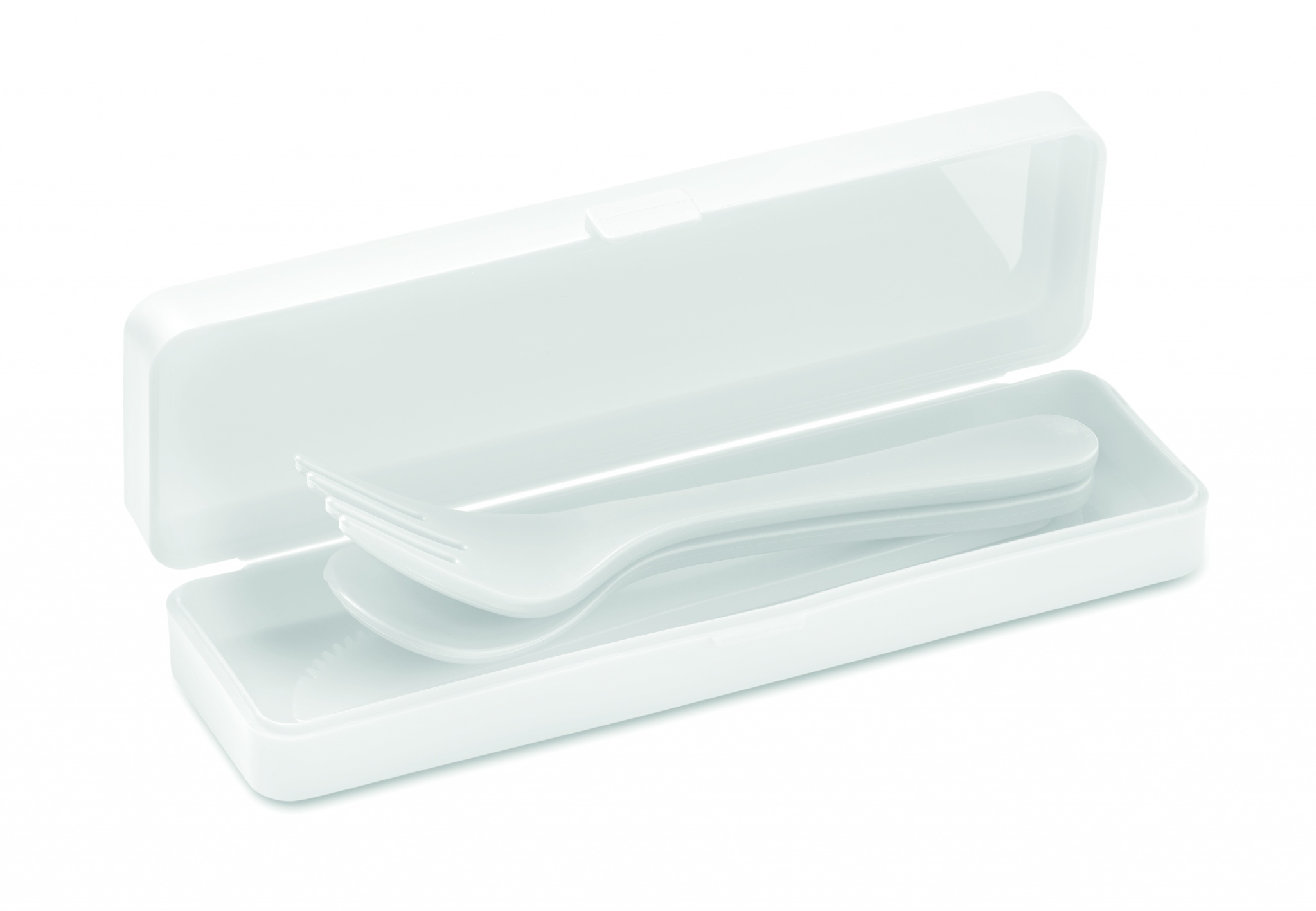 Korduvkasutatav PP kaasaskantav söögiriistade komplekt ja karp. Kaasas lusikas, kahvel ja nuga.