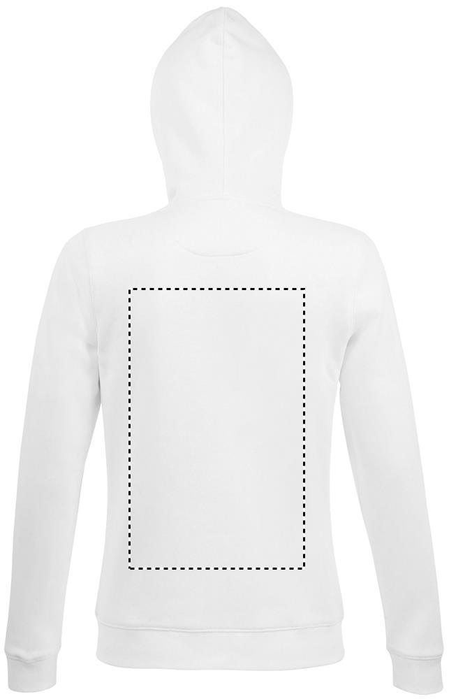 SOLI PIKE NAISED. Naiste tõmblukuga kapuutsiga pusa, 80% rõngaskedraga puuvill - 20% polüester Harjatud vooder, Väljast: 100% puuvill FLIIS 280 LSF (madala kokkutõmbumisega kangas), Sisseehitavad varrukad, 2 kotitaskut ees, Lõige ja õmmeldud, Voodriga kapuuts koos tooniga -tooniga nöör, 2x2 sooniku mansetid ja alläär. Krae sees poolkuu, teibitud kael, YKK tõmblukk. ÖKO-TEX®. Müüakse ainult trükiga.