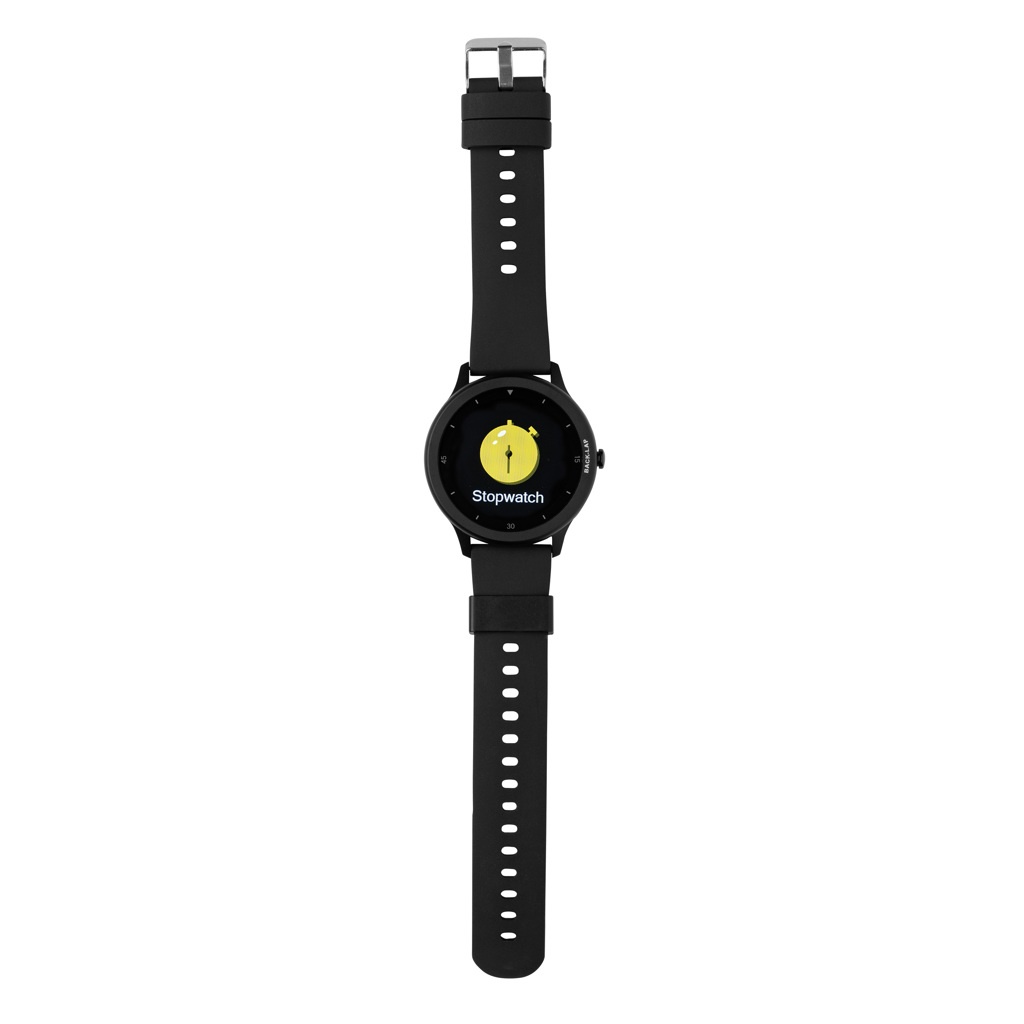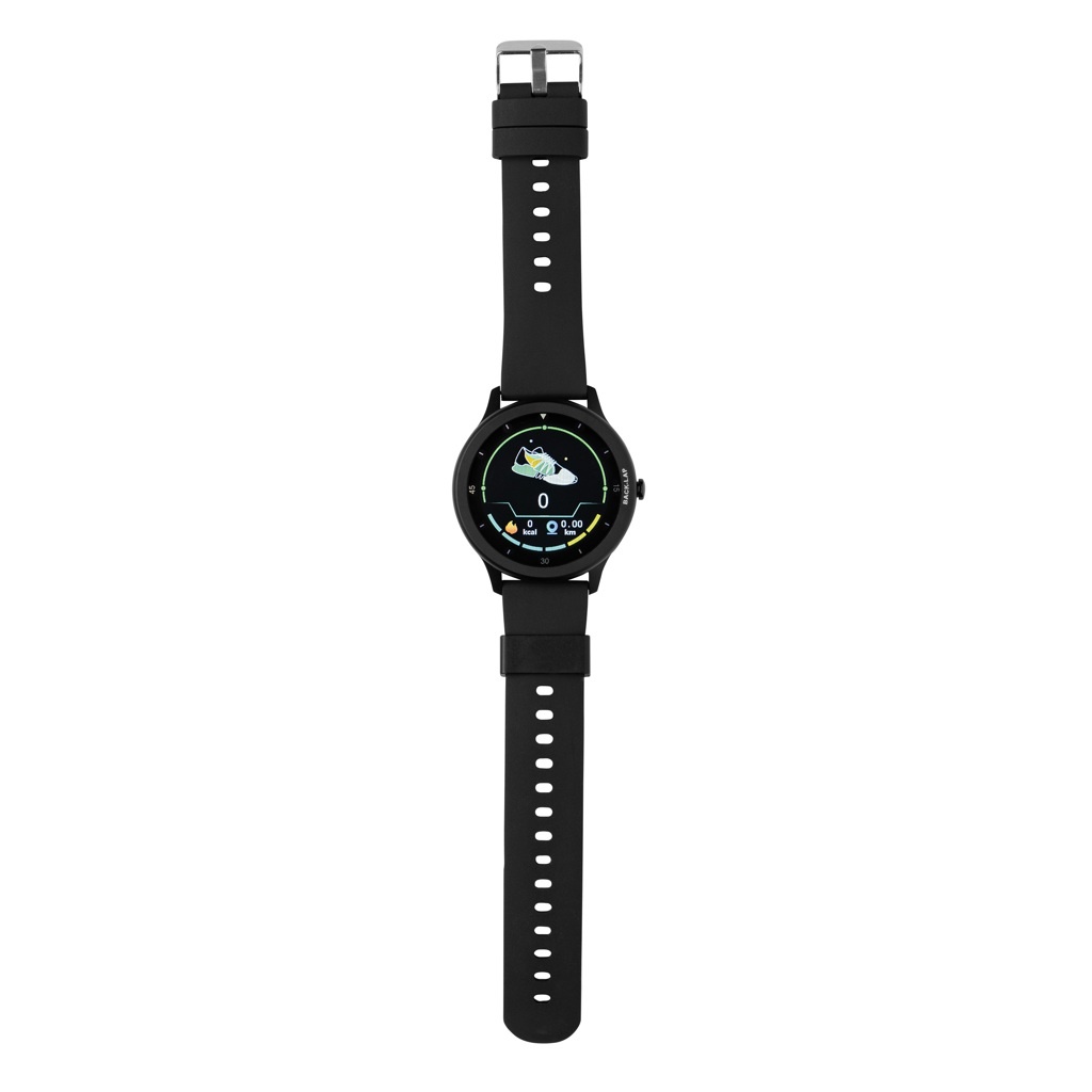 Moodne suure jõudlusega kell 1,28-tollise ümmarguse kiire reageerimisvõimega täispuuteekraaniga, et jälgida teie tegevusi kogu päeva jooksul. Kõrge eraldusvõimega ekraan. Valmistatud RCS (Recycled Claim Standard) sertifitseeritud taaskasutatud TPU käepaela ja tsingisulamist raamiga. Taaskasutatud sisu kokku: 23% RCS-i sertifikaat tagab taaskasutatud materjalide täielikult sertifitseeritud tarneahela Funktsioonide hulka kuuluvad: sammude arv, kalorid, distants, mitme spordiala (24 tüüpi) jälgimiskell, pulsi jälgimine, vererõhu jälgimine, unemonitori kalender. Uuendused: SMS, Facebook, Skype, WhatsApp jne. Ühildub operatsioonisüsteemidega Android 4.4 ja IOS 8.0. Ooteaeg on 25 päeva ja tööaeg kuni 7 päeva kella laadimiseks Pakitud FSC® mix kraft pakendisse Toode ja tarvikud 100% PVC vaba.