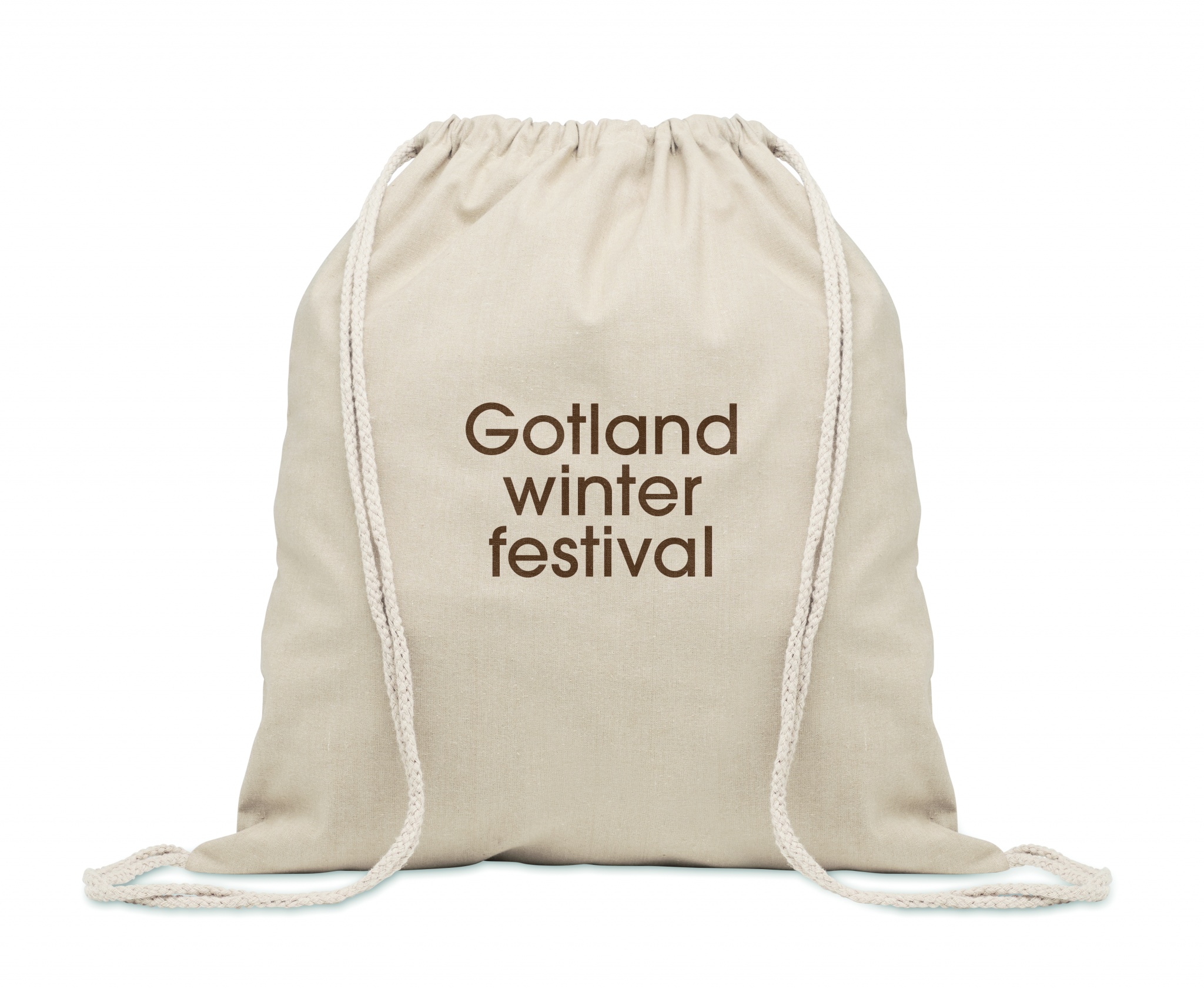 Pingutusnööriga kott taaskasutatud tarbimiseelsest puuvillast (70%) ja RPET-st (30%) 140 gr/m².