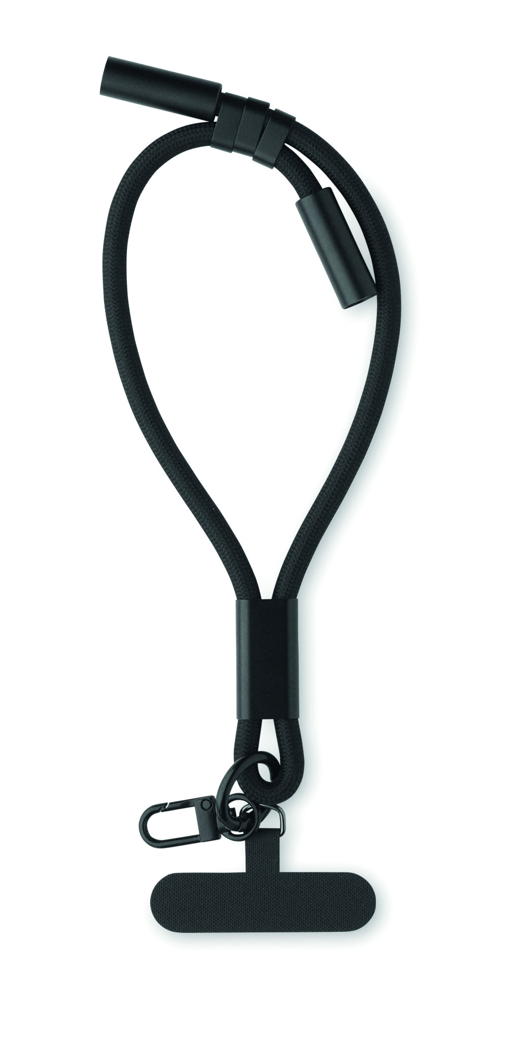 60W käepaela laadimis- ja andmesidekaabel RPET-materjalist, C-tüüpi ja C-tüüpi ühendamiseks, telefonijuhtmehoidja ja võtmehoidjaga.