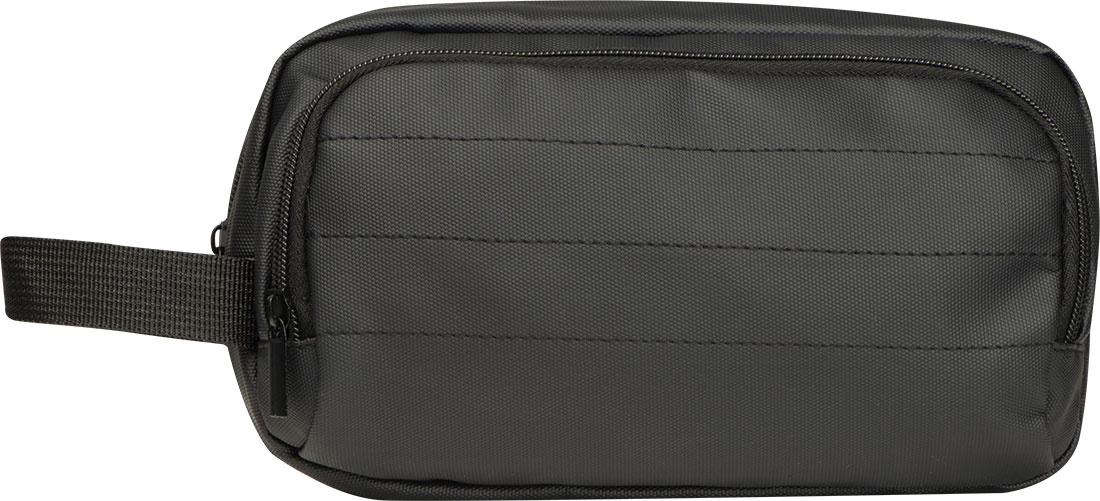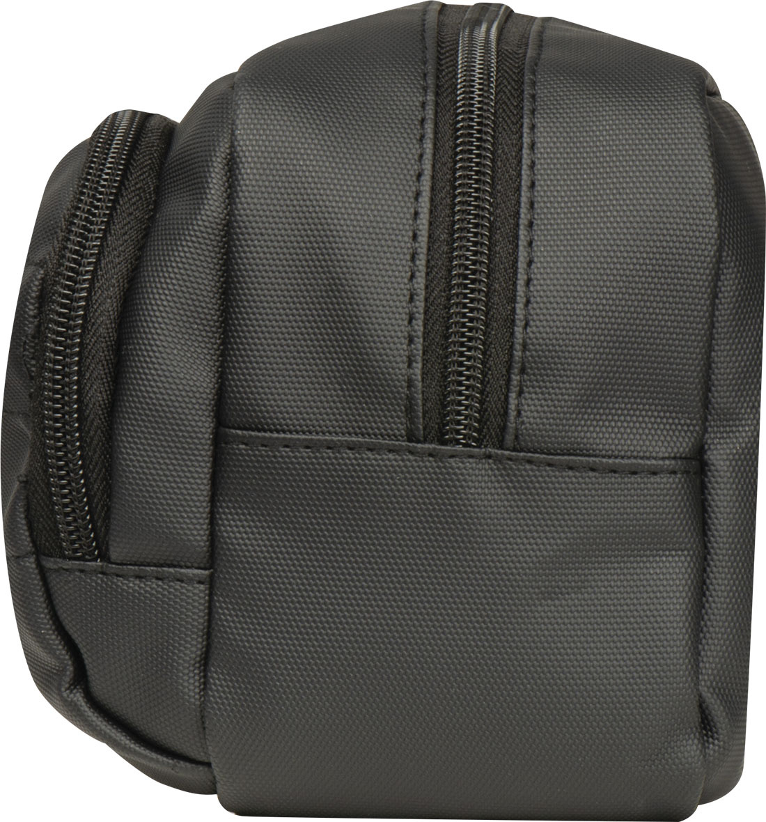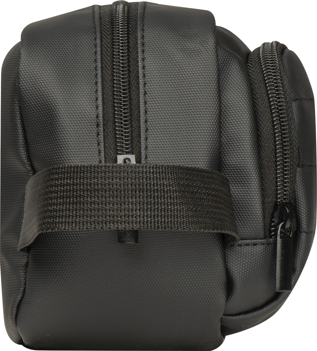 Kvaliteetne polsterdatud PU-kattega polüestrist tualett-tarvete kott. Sellel on peamine lukuga sahtel ja täiendav eesmine lukuga tasku ning kandeaas. Vastupidav ja veekindel, ideaalne reisimiseks ja igapäevaseks kasutamiseks.