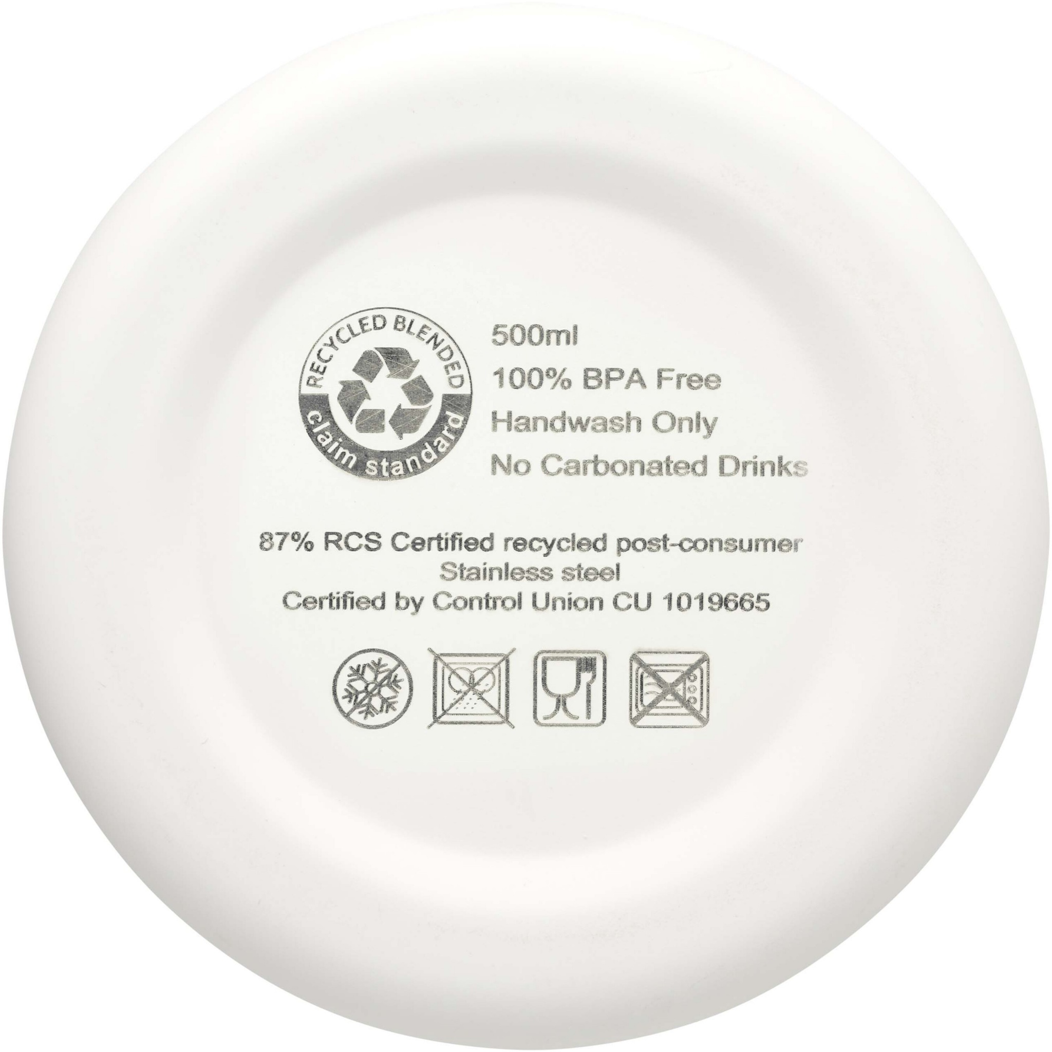 Vedruga 500 ml RCS sertifikaadiga taaskasutatud roostevabast terasest vasest vaakumisolatsiooniga pudel, Valge