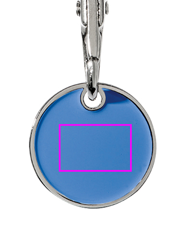 Metallist võtmehoidja haagise ja ostumündiga. Mündi üks külg on värviline. Graveerime teie logo hõbedasele küljele.