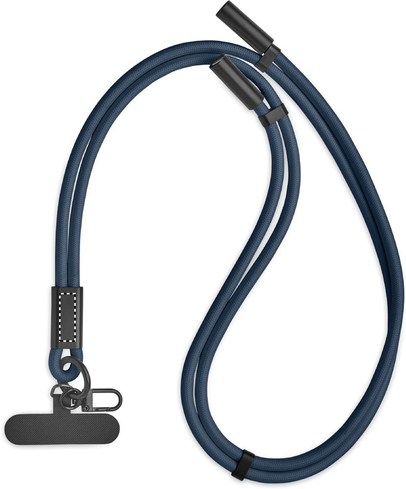 Nyörikaulanauha, jossa 60 W:n lataus- ja tiedonsiirtokaapeli (C-C-tyyppi) RPET-muovista, puhelinjohdon pidike ja näppäinpidike.