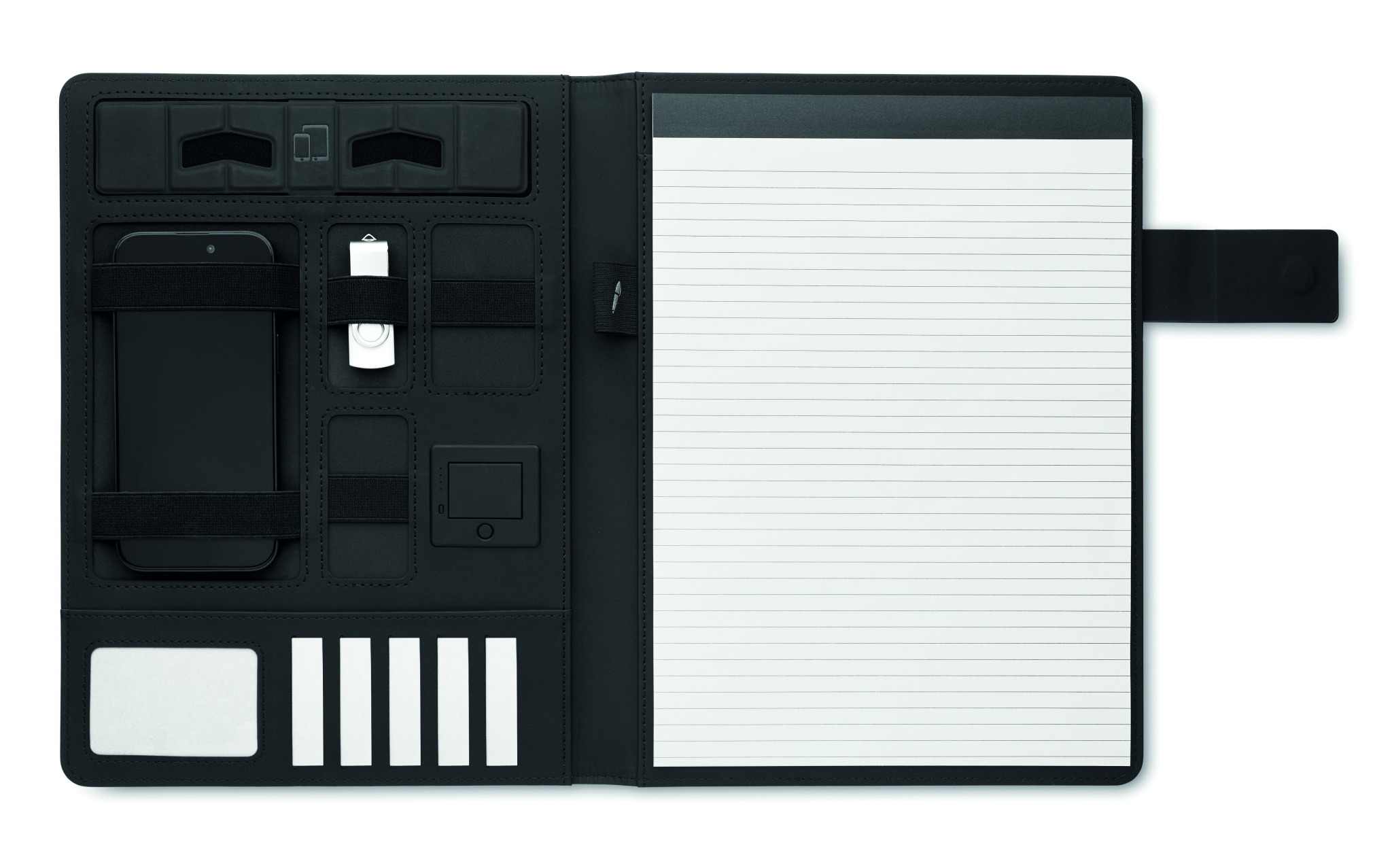 Logo trade liikelahja mainoslahja tuotekuva: A4-kansio ja langaton laturi