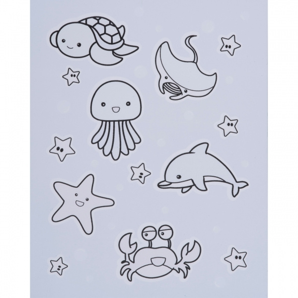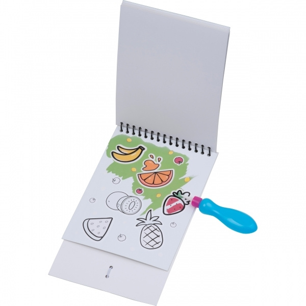 Se on taikaa! Pienellä määrällä vettä lapset voivat viihtyä yhä uudelleen ja uudelleen. Täytä sivellin vedellä ja aloita maalaaminen yhdelle neljästä hauskoja eläinaiheita sisältävästä sivusta. Heti kun paperi joutuu kosketuksiin veden kanssa, värit ilmestyvät. Kun se kuivuu, värit katoavat ja hauskanpito voi alkaa alusta. Painamme logosi etukanteen.
