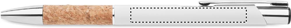 Alumiinista valmistettu kuulakärkikynä, jossa on otekohta korkkia. Sininen muste.