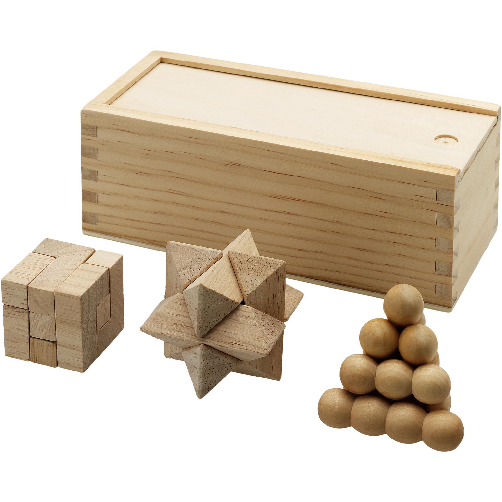 3 palapelin setti puisessa lahjakotelossa. Painatus ei ole mahdollinen peleihin.