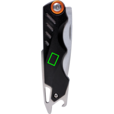 Huippukestävä veitsi, jossa 4 toimintoa. Pakattu ylelliseen lahjapakkaukseen, ml. huippulaatuinen 1680D-pussi. Alumiinirunko ja ruostumattomat terästyökalut. Työkaluihin kuuluvat: Sisään taitettava terä, terän lukitus, vyöklipsi, pullonavaaja.