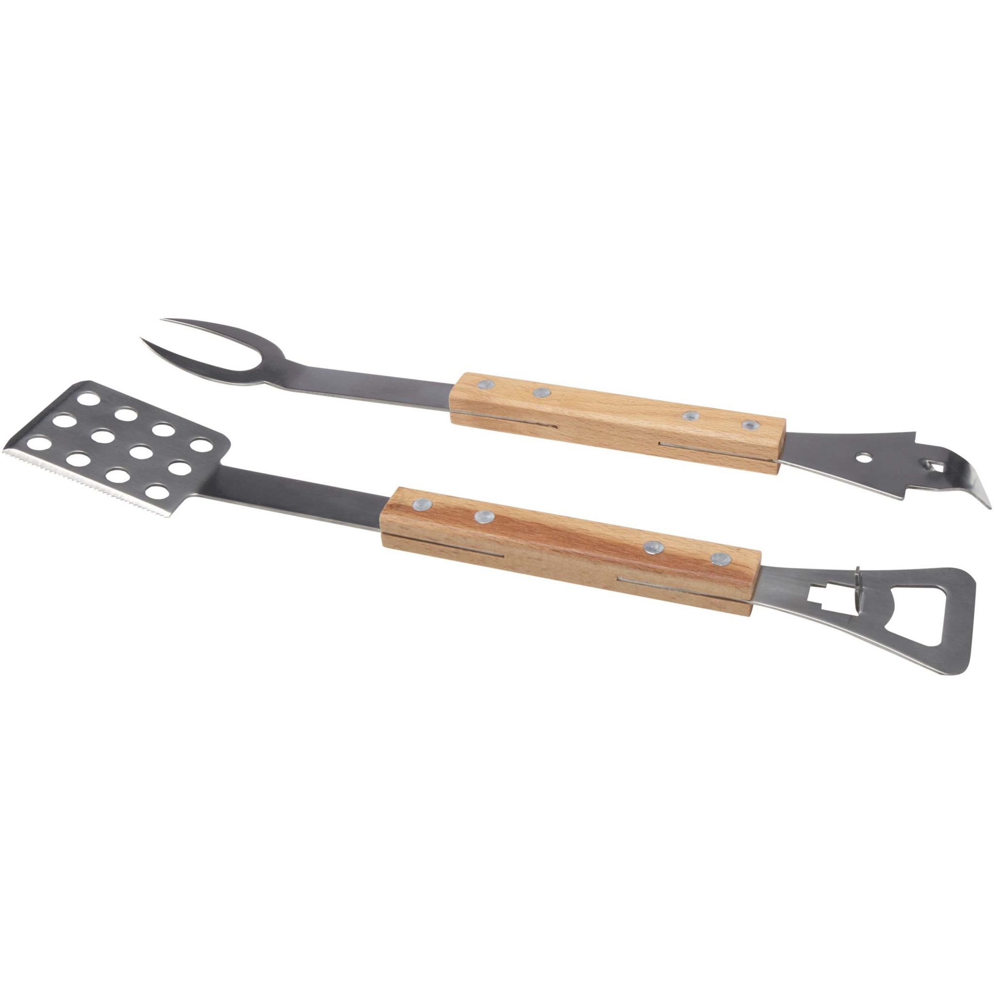 Tässä kätevässä 4-in-1-grillitarvikesetissä on lasta, haarukka, tölkinavaaja ja pullonavaaja. Kaikki on valmistettu tammesta ja RCS-sertifioidusta ruostumattomasta teräksestä. Mukava ja helppokäyttöinen setti on täydellinen lahja kaikille grillimestareille.