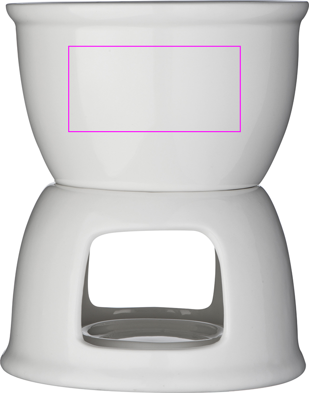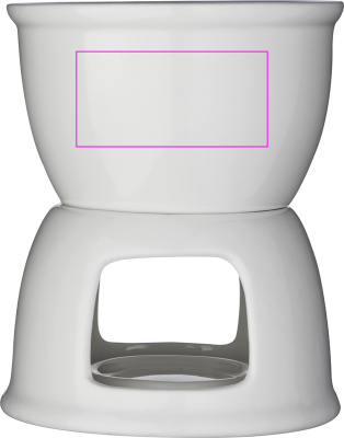 Posliinista valmistettu suklaafondue-setti, joka sisältää 2 fonduehaarukkaa. Kasta hedelmiä tai keksejä suklaaseen ja nauti tästä kauniista lahjapakkauksesta. Logosi painetaan tarraan ja liimataan yksittäiseen laatikkoon.