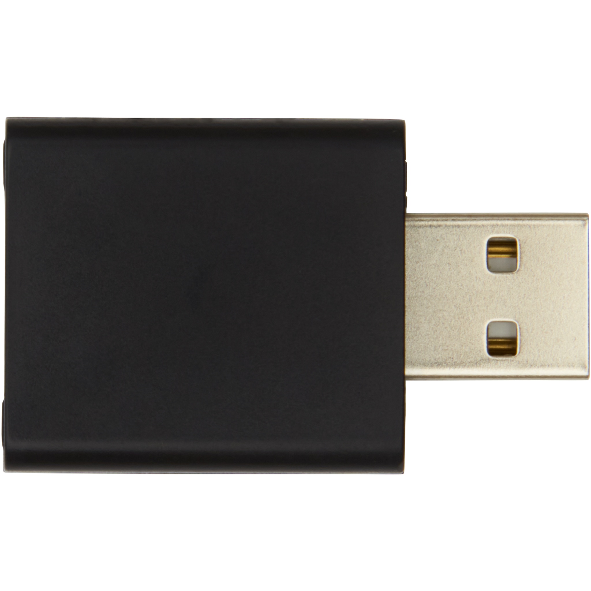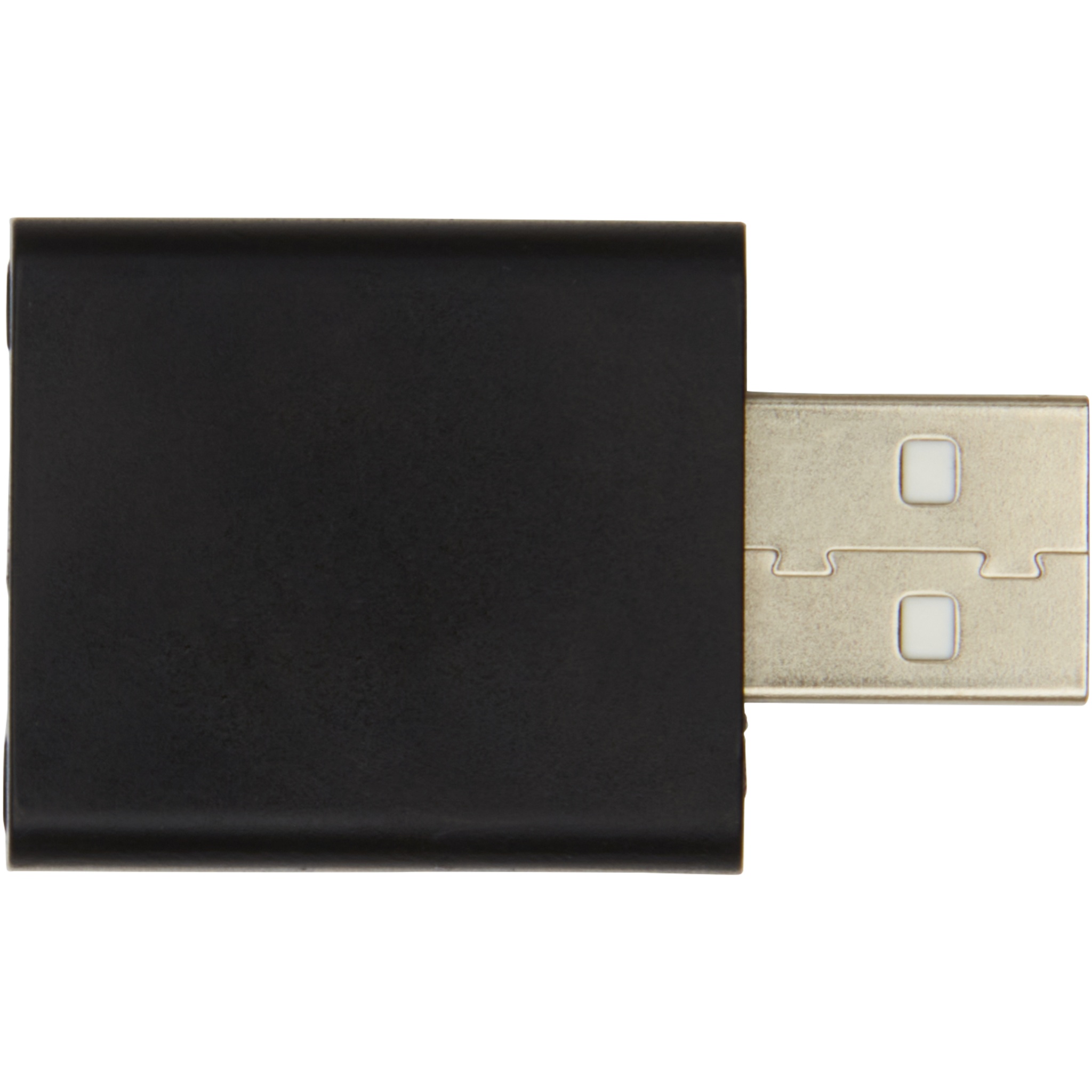 USB-tietosuoja, joka estää tahattoman tiedonvaihdon, kun mobiililaite yhdistetään tietokoneeseen tai julkiseen latausasemaan. Väline tukkii tiedonsiirron laitteen lataamisen aikana, mikä estää tietojen varastamisen ja haittaohjelmien asentamisen.