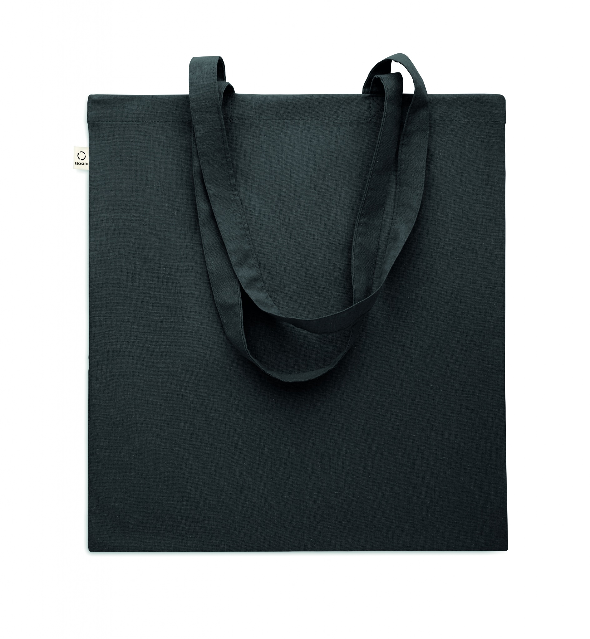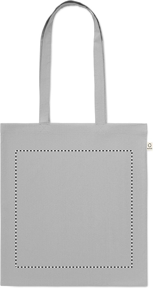 Kierrätetty ostoskassi (70 % kierrätettyä puuvillaa ja 30 % RPET) pitkällä kahvalla. 140 g/m².