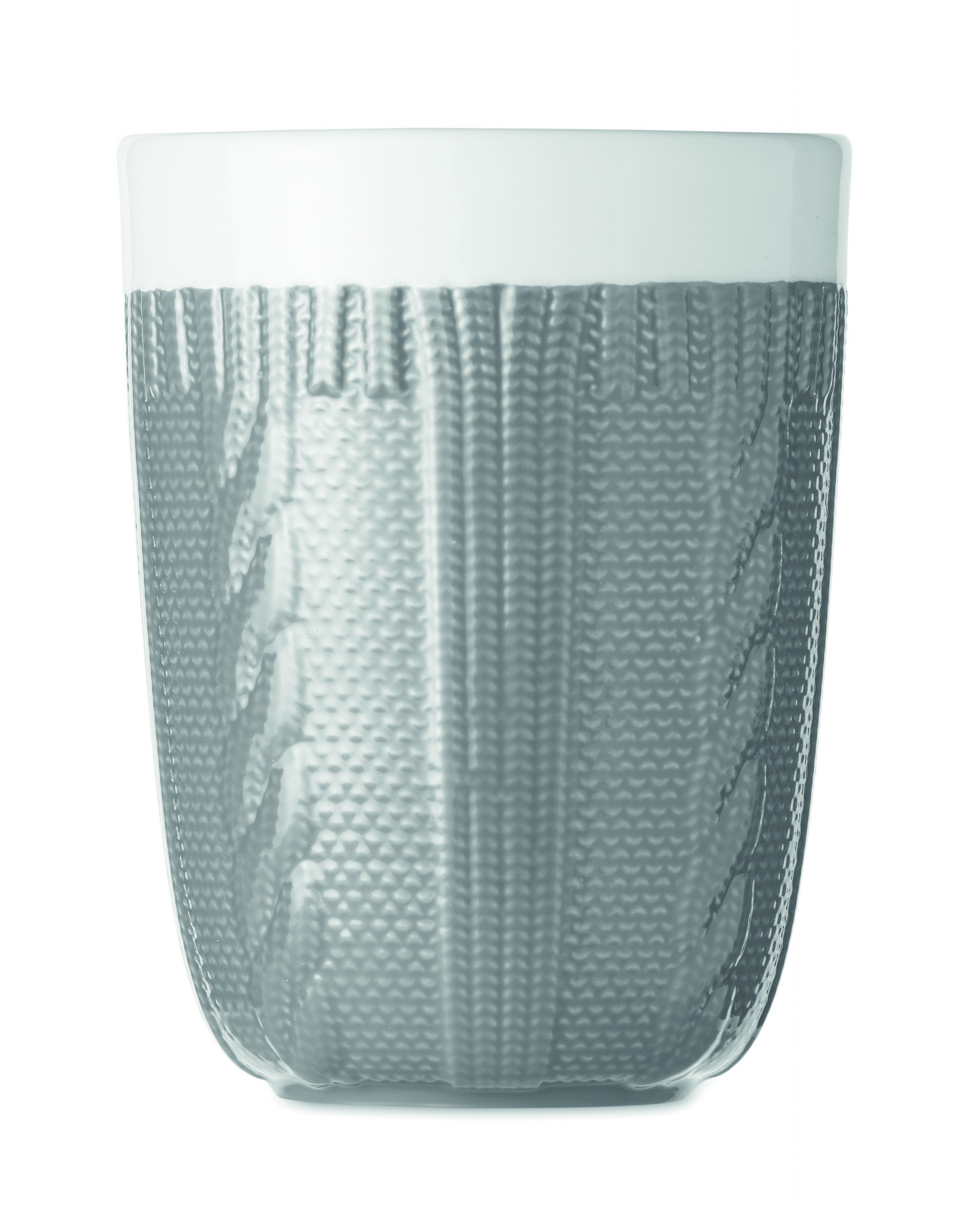 310 ml keraaminen muki, virkatun näköisellä designilla. Pakattuna yksittäin pahvilaatikkoon.