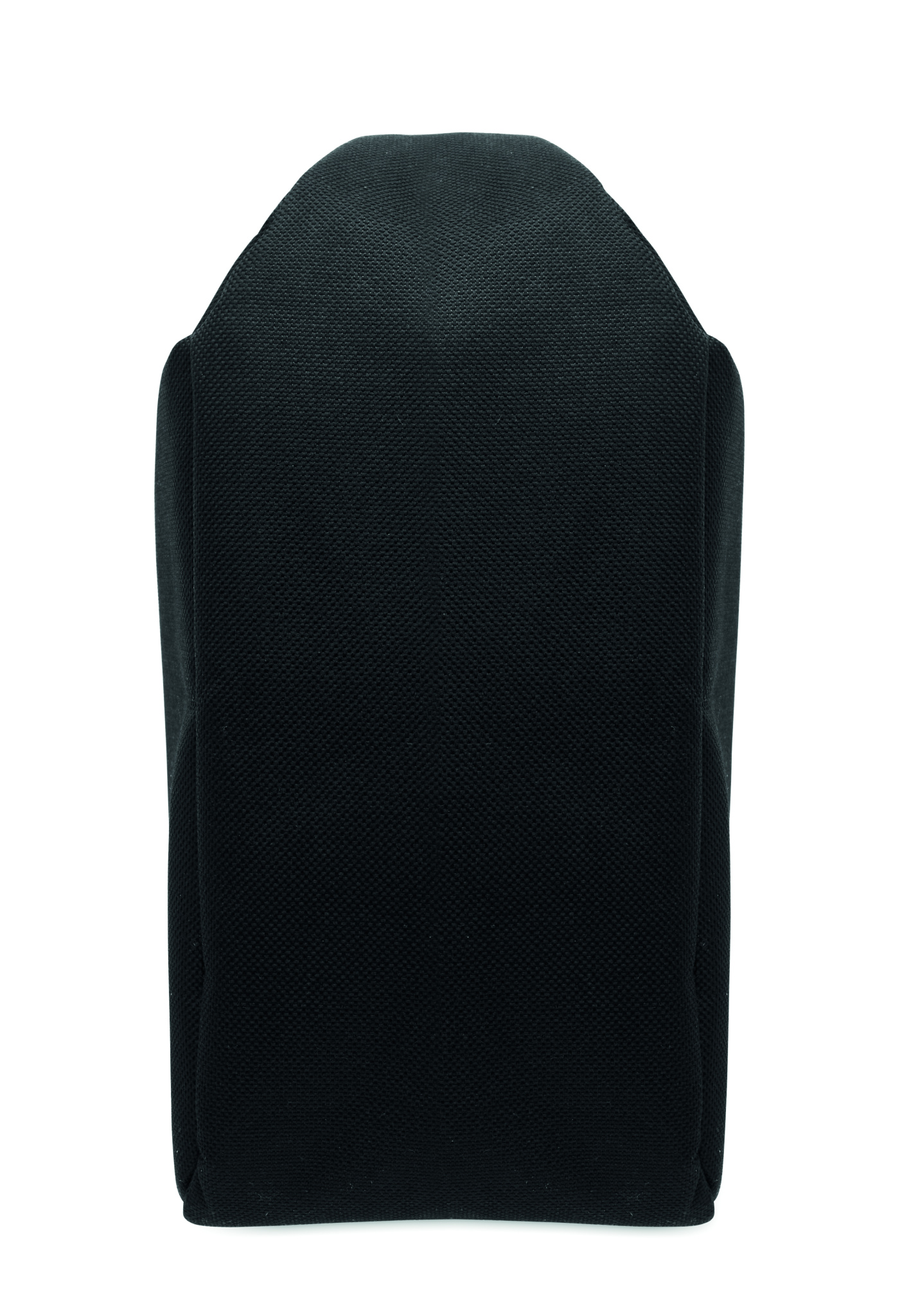 Kylmälaukku lounaalle lämpötilanäytöllä, valmistettu 600D RPETistä, 3 mm PE-vaahdolla ja alumiinifoliovuorilla. Solkilukko, vetoketjullinen päälokero ja sivutasku. Tilavuus 10 L.