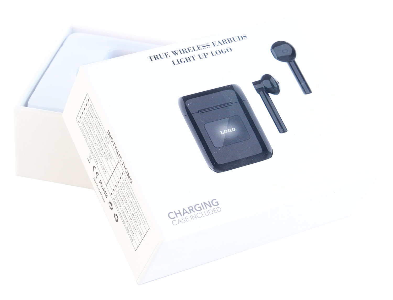 Logo trade mainostuotet tuotekuva: Langattomat nappikuulokkeet valologolla