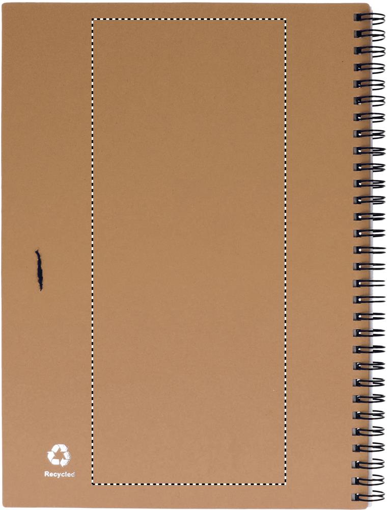Kierrätetty muistikirja, mustalla tai luonnonruskealla kannella. Sisältää 140 sivua kierrätyspaperia (70 arkkia) ja biohajoavan kierrätetyn kuulakärkikynän sinisellä musteella.