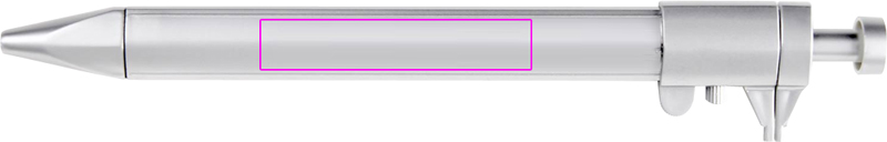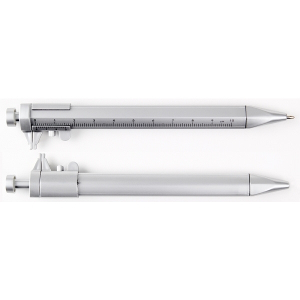 Muovinen kuulakärkikynä viivaimella ja jarrusatulalla. Painamme logosi vaakaa vastapäätä.