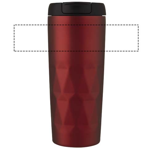 Kaksiseinäinen kuparityhjiöeristetty kahvimuki, jossa on tiivis kierrekansi ja geometrinen kuviointi. Eristetty 18/8 ruostumaton teräs pitää juoman kuumana tai kylmänä useita tunteja. BPA-vapaa, testattu ja hyväksytty Saksan elintarviketurvallisuuslainsäädännön (LFGB) mukaisesti, sekä ftalaattipitoisuus testattu REACH-asetusten mukaisesti. Tilavuus on 450 ml. Suositellaan pestäväksi käsin. Toimitetaan kierrätetystä kartongista valmistetussa lahjapakkauksessa.