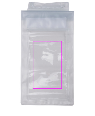 Vedenpitävä puhelinkotelo, jossa silmukka ja paniikkilukko. Painamme logosi pussin keskelle.