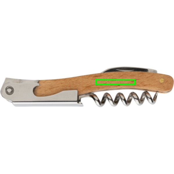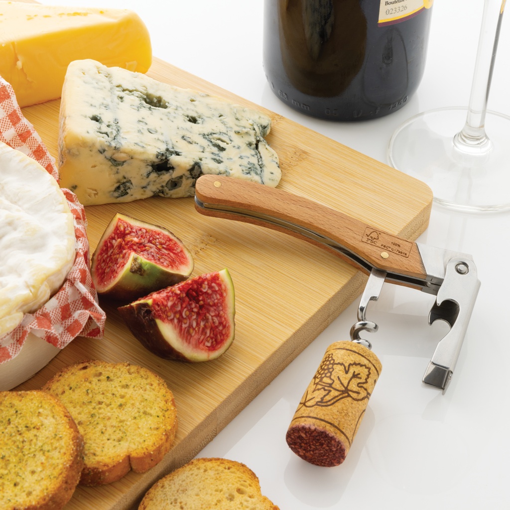 Ammattimainen korkkiruuvi valmistettuna FSC 100% pyökistä ja erittäin kovasta ja korroosionkestävästä ruostumattomasta teräksestä (420). Rockwell kovuus 45-55. Tuotteessa on 3 toimintoa: pullonavaaja, korkkiruuvi ja folioleikkuri. Pakattu FSC-sekoituksesta valmistettuun kraft pakkaukseen.