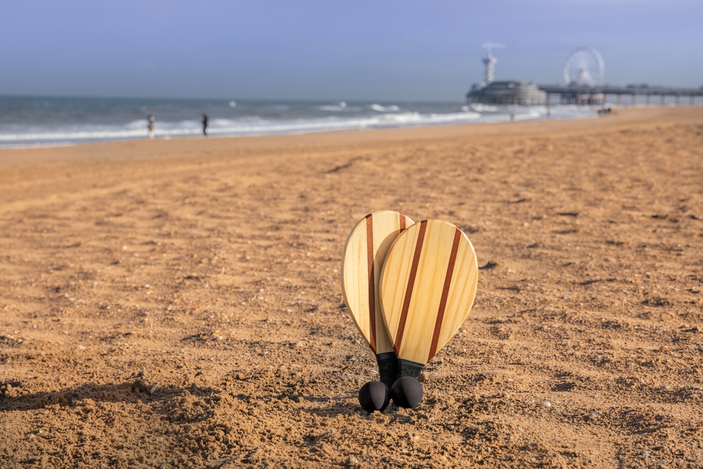 Ylellinen katseenvangitseva rantatennissetti rannalle, puistoon tai mukaan lomalle. Valmistettu vahvasta ja kestävästä männystä sekoitettuna Sapele -puuhun, mistä johtuen puukuvio vaihtelee mailakohtaisesti. Sisältää kaksi korkealaatuista palloa. Mailoissa on mukava varsi, josta saa hyvän otteen. Sisältää puuvillapussin setin helppoon mukaanottoon rannalle tai puistoon.