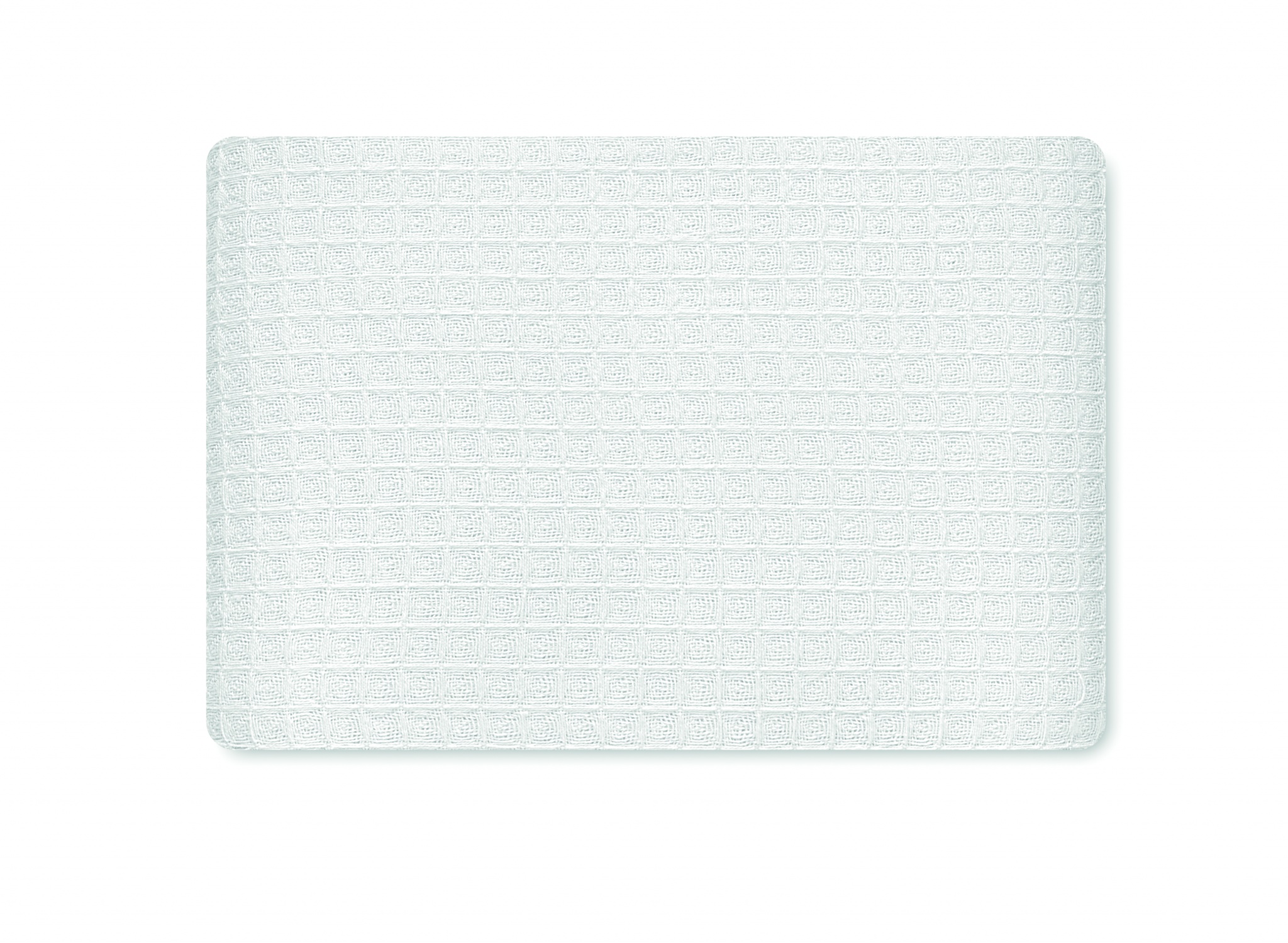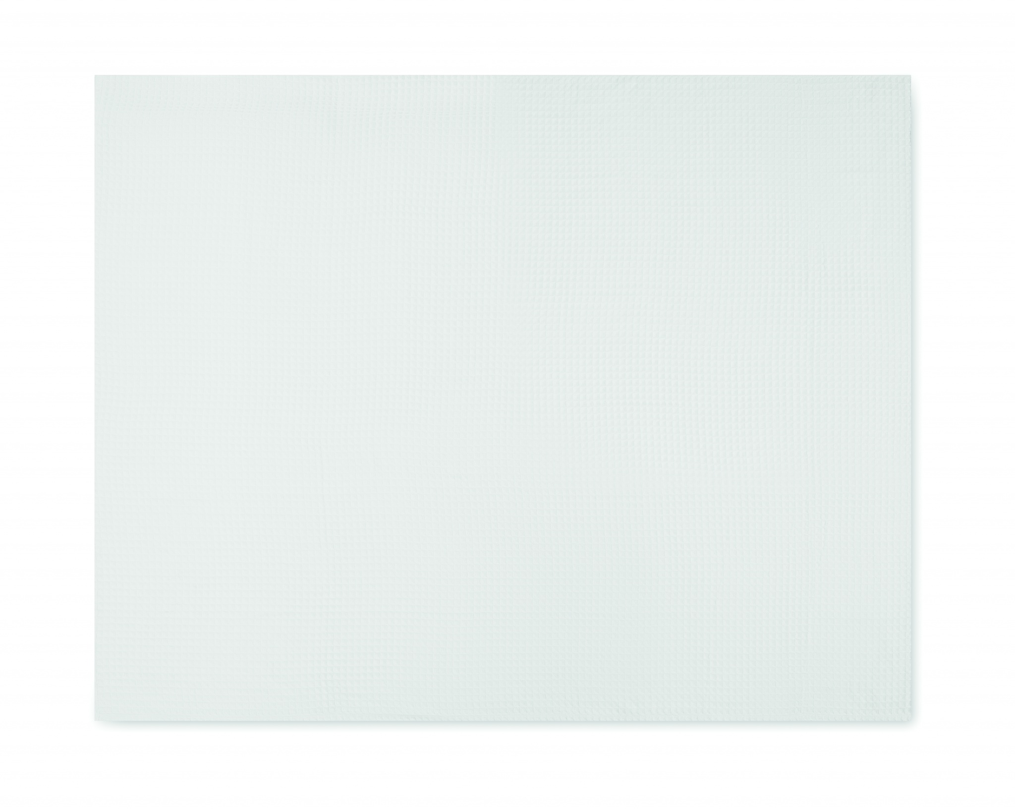 300 gr/m² kevyt puuvillainen vohvelipeitto. Valkoisessa kannellisessa laatikossa.