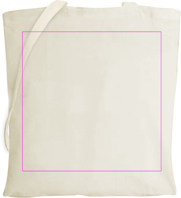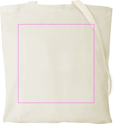 Öko-Tex® STANDARD 100 -sertifioitu puuvillakassi, jonka neliömassa on 140 g/m² ja kaksi pitkää kahvaa. Painamme logosi pussin keskelle.