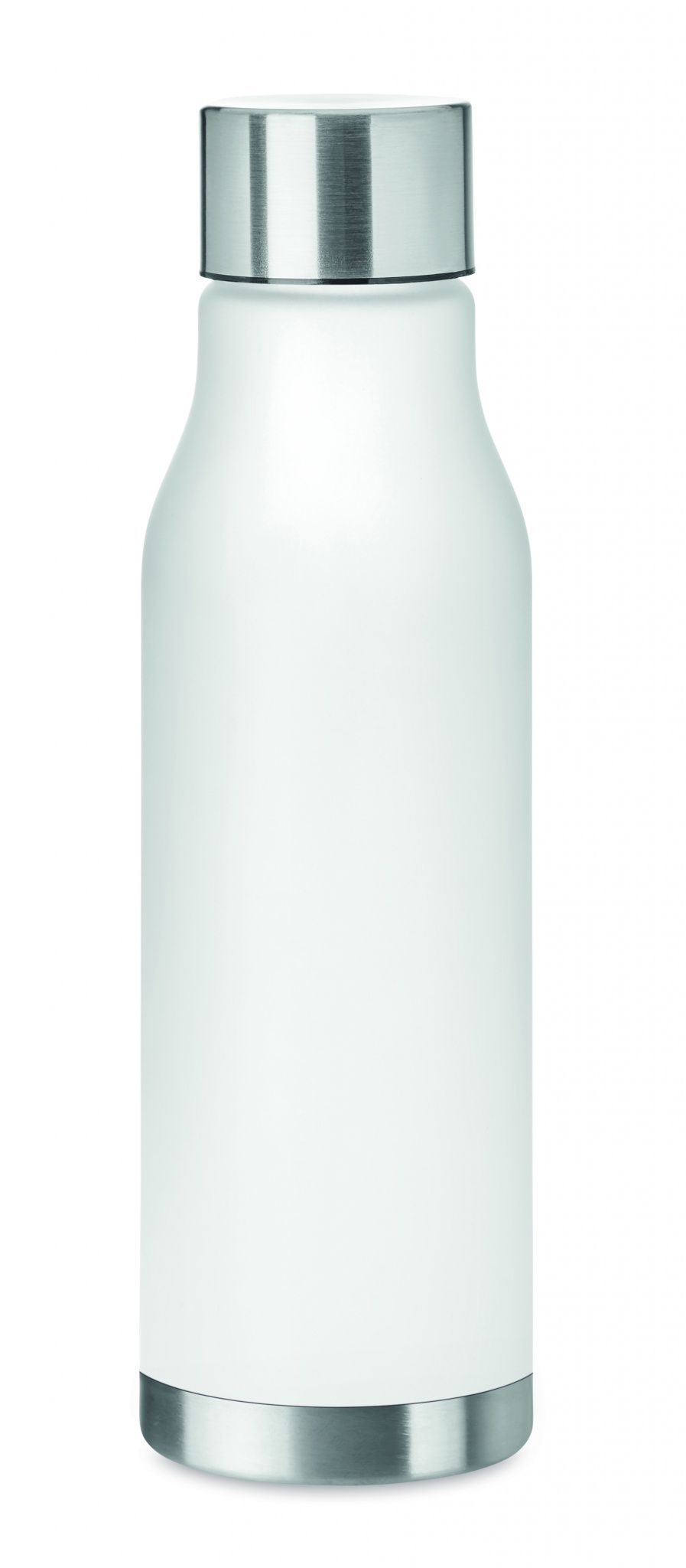 RPET 600 ml juomapullo kumisella pinnalla ja ruostumattomasta teräksestä valmistetulla korkilla. Tuote on BPA ja vuoto vapaa, ei sovellu käytettäväksi hiilihapollisilla nesteille.
