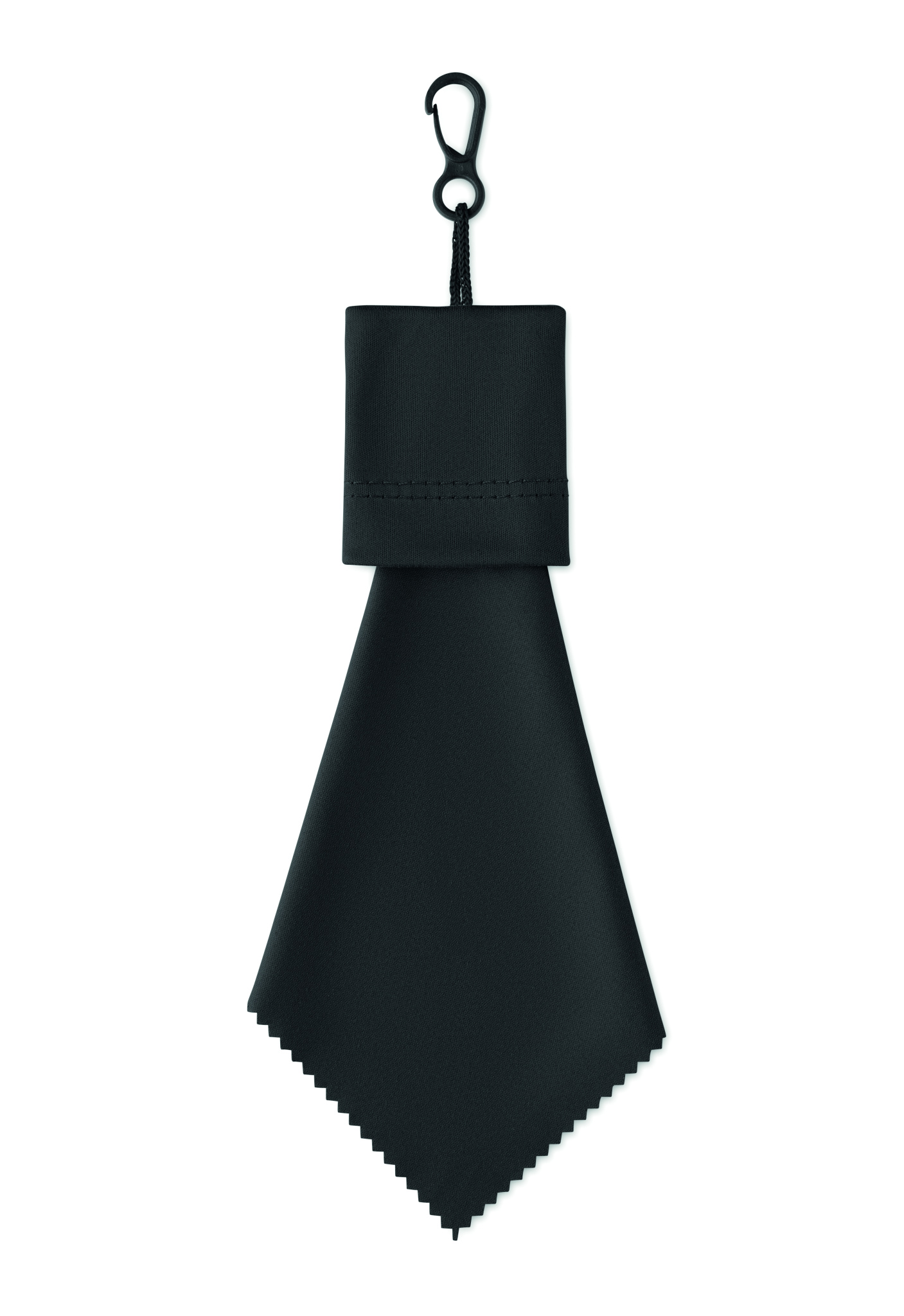 Puhdistusliina RPET-materiaalista omassa pussissaan, jossa PP-muovinen ripustuskoukku