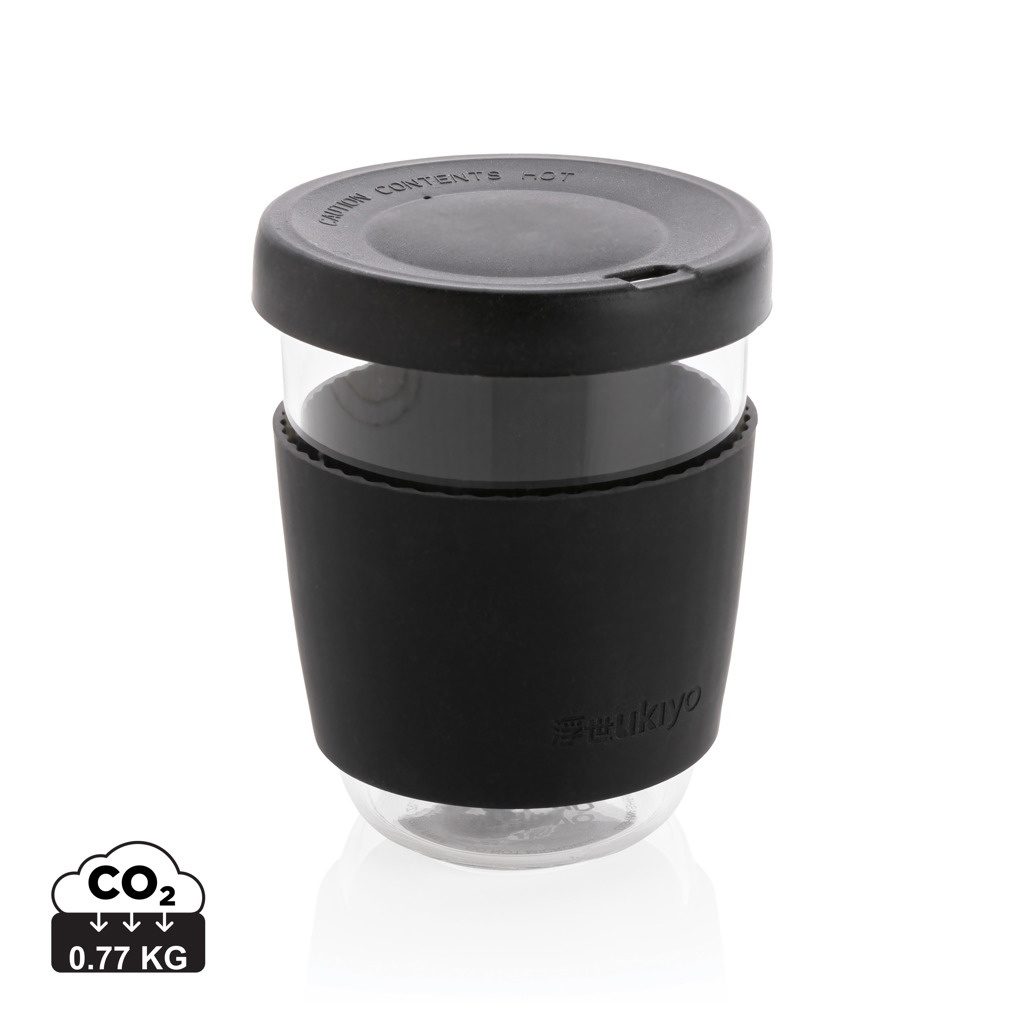 Logo trade mainoslahjat ja liikelahjat kuva: Ukiyo borosilikaattilasinen lasi silikonikannella