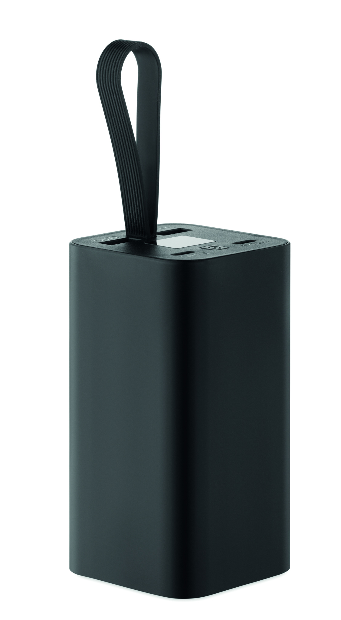 20 000 mAh:n varavirtalähde kierrätetystä alumiinista, jossa on digitaalinen virtanäyttö ja silikoniripustus. Sisältää kaksi Type-C- ja kaksi USB-A-lähtöä sekä PD 65W pikalatauksen.