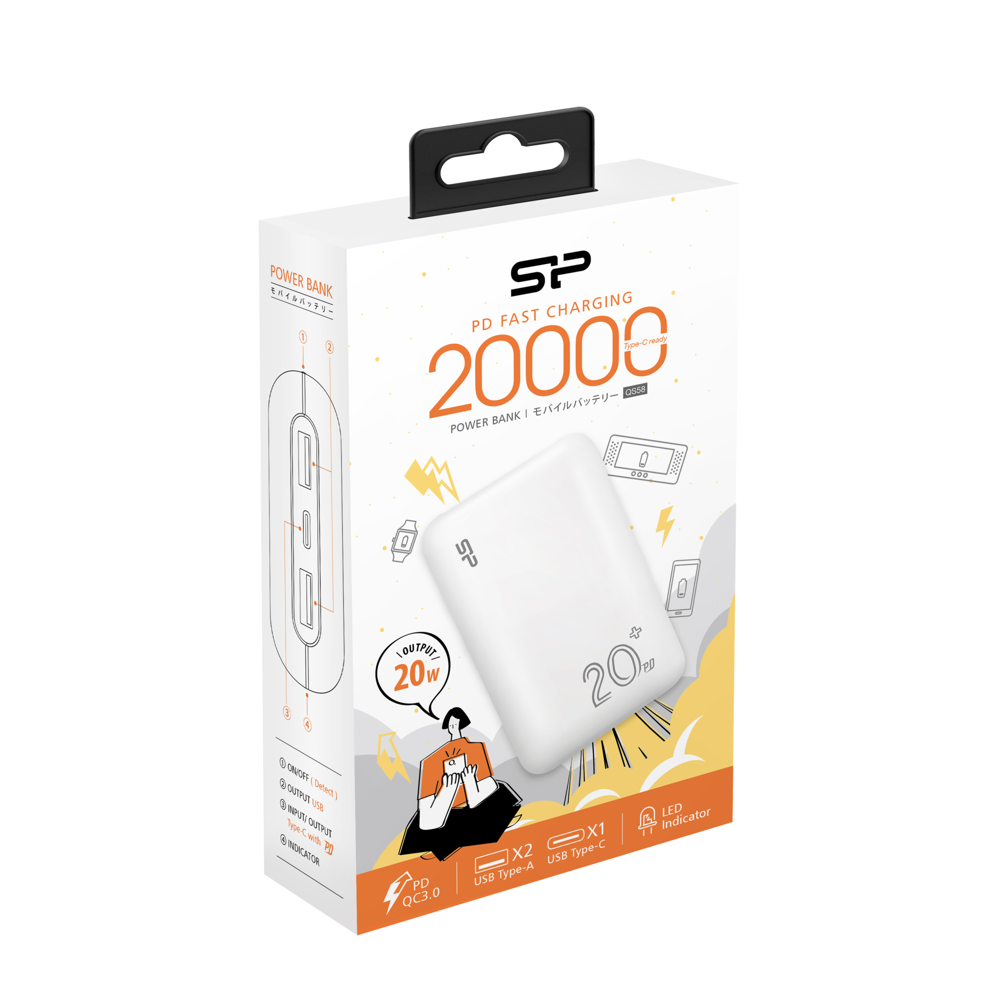 Virtapankki Silicon Power QS58 20000 mAh, valkoinen