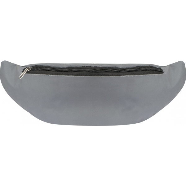 Polyesterista valmistettu heijastava vyölaukku, jossa säädettävä hihna ja iso lokero. Logosi painetaan pussiin.