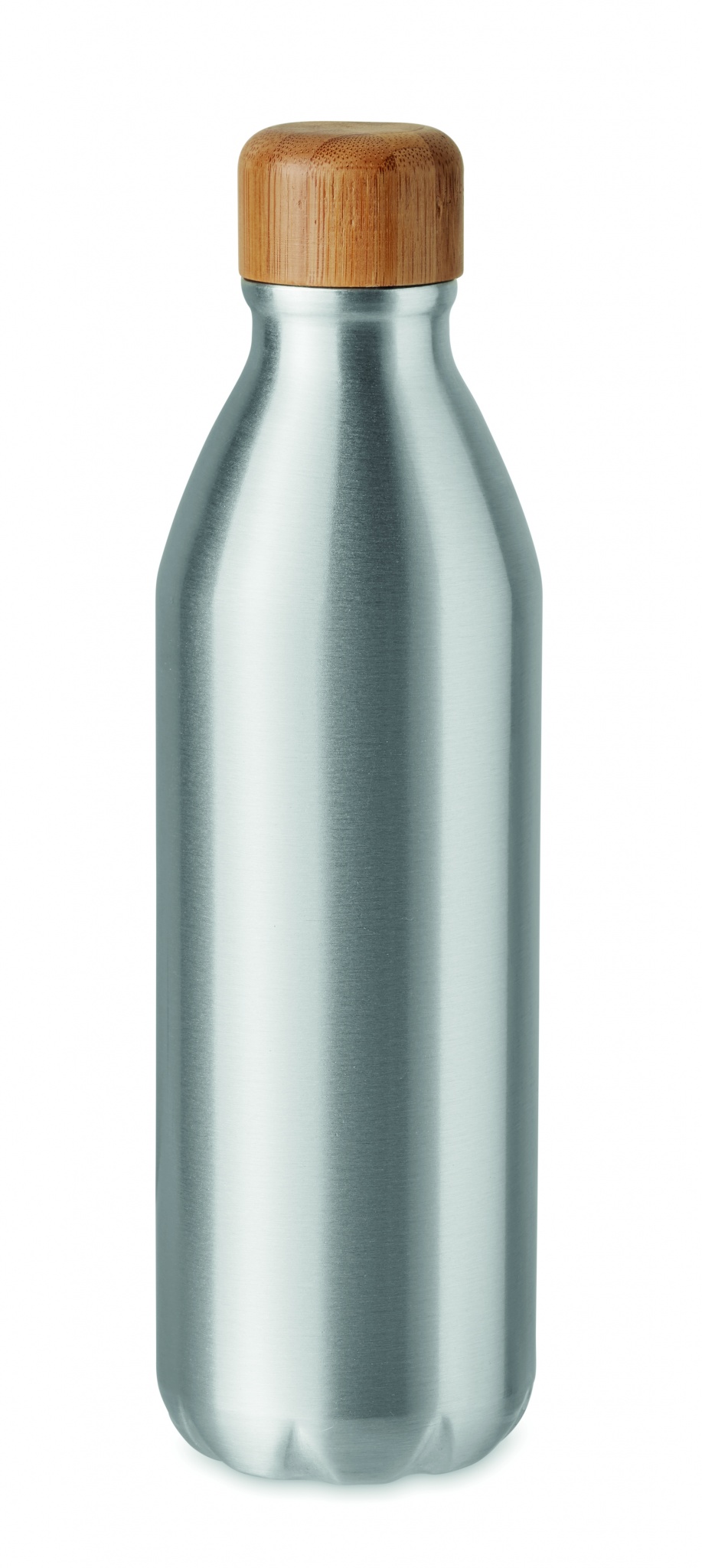 Viensienis Aliuminio butelis su bambuku. Talpa: 550 ml. Bambukas yra natūralus produktas, gali šiek tiek skirtis kiekvieno gaminio spalva ir dydis, o tai gali turėti įtakos galutiniam dekoravimo rezultatui.
