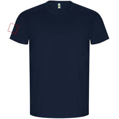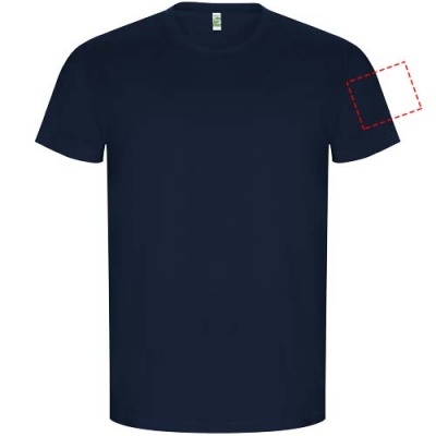 Vamzdiniai marškinėliai trumpomis rankovėmis iš ekologiškos medvilnės. Įtemptas kaklas su 1x1 šonkauliu. Dekoratyvinės siūlės ant apačios ir rankovių. Nuimama etiketė. Modelis yra 185 cm ūgio ir dėvi L dydį.