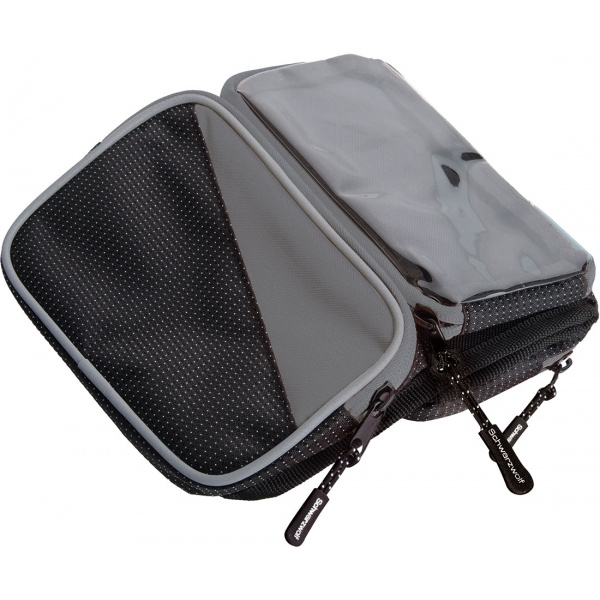 Kompaktiškas Schwarzwolf dviračio krepšys su kišene telefonui. Krepšys turi dvi šonines kišenes su užtrauktuku ir skaidrią nuimamą telefono kišenę. Vidiniai maišelio išmatavimai: 8 x 16,5 x 2 cm. Supakuota Schwarzwolf dėžutėje.