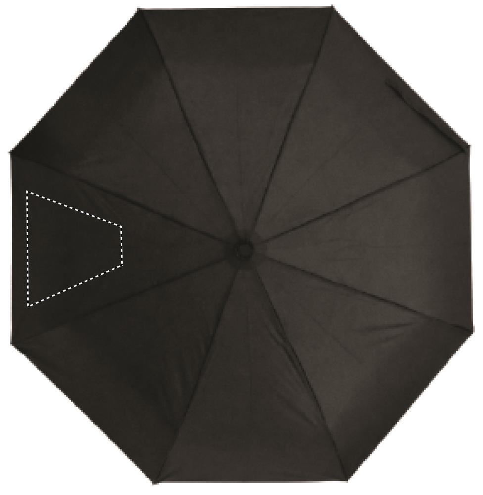 Salokāms 21 collu lietussargs, 3 sekcijas ar 190T RPET pongee audumu, melns rāmis un ribas ar koka rokturi. Manuāla atvēršana un aizvēršana. Pašmateriāla maciņš.