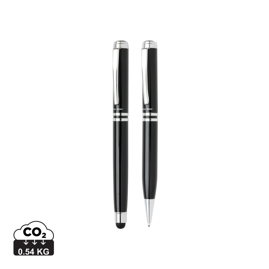 Autentisks pildspalvu komplekts, kam ir visas klasiskās kvalitātes pazīmes. Augstas kvalitātes smagā misiņa metāla rullīšu bumba ar irbuli un lodīšu pildspalvu ar Swiss Peak zīmolu. Ietver augstākās kvalitātes PU ādas maisiņu un dāvanu kastīti. Zilā tinte.