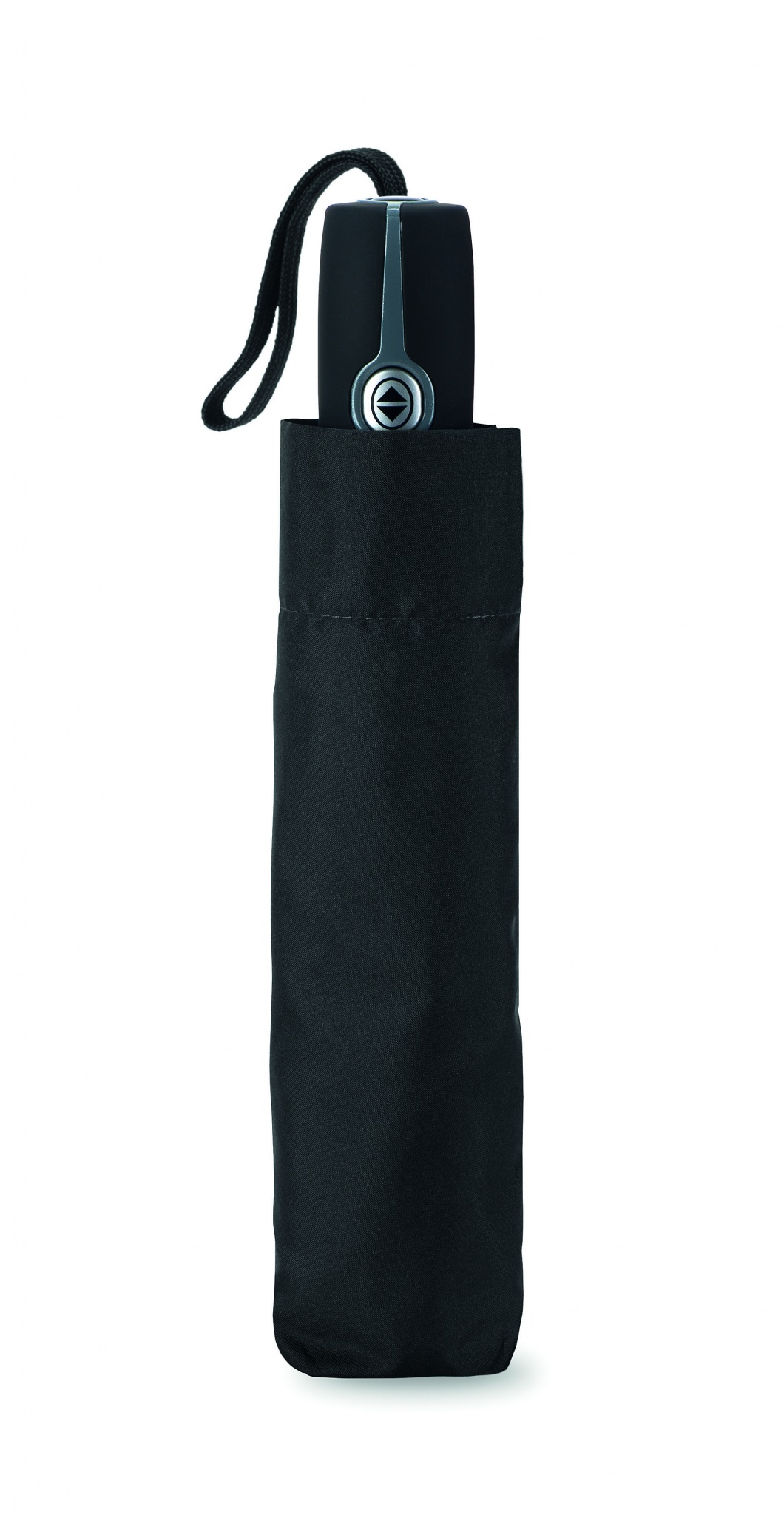 21 collu Luxe 3 locīšanas automātiskais vēja necaurlaidīgs lietussargs 190 T pongejā ar cinkotu tērauda kātu, melnām ribām ar 2 sekciju stikla šķiedras un hroma metāla galiem, melnu gumijotu rokturi ar kupolu. Iekļauts atbilstošs maisiņš. Automātiska aizvēršana.