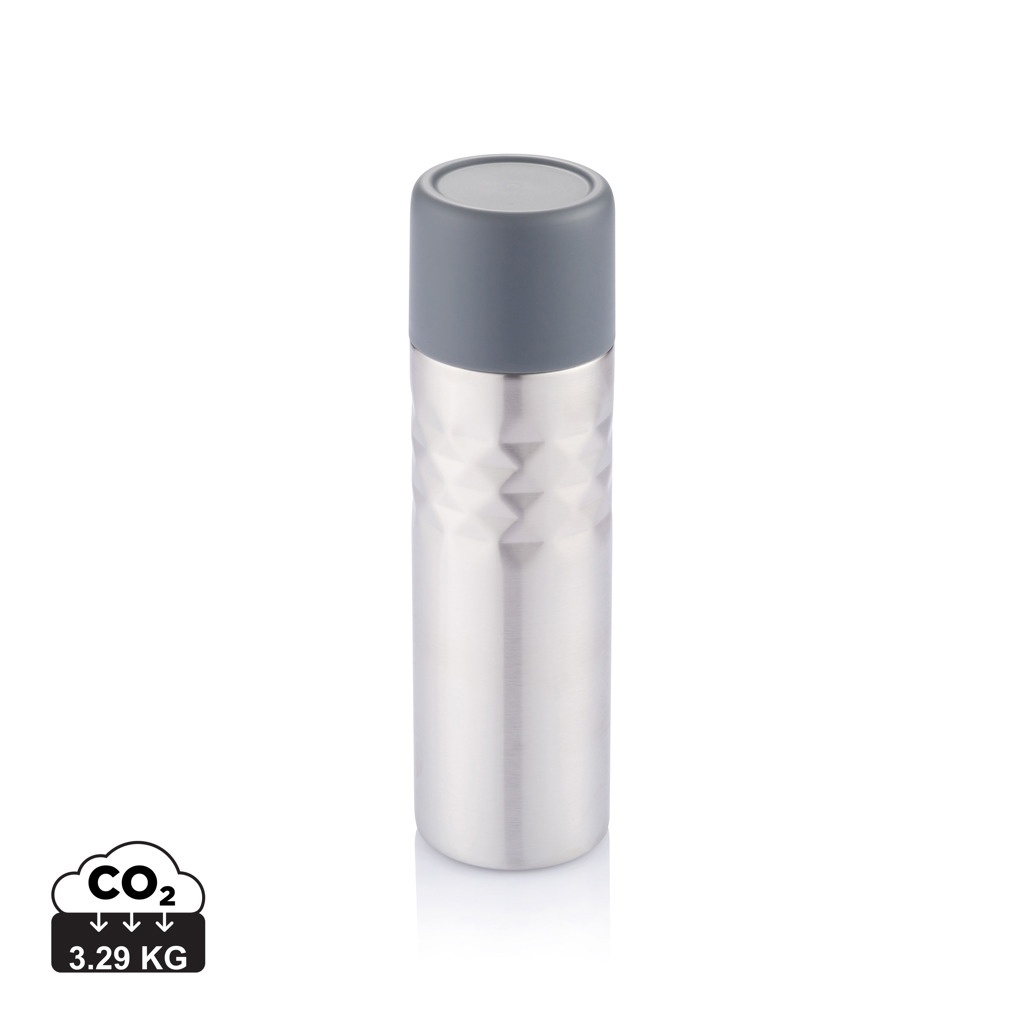 Mosa ir moderna 500 ml dubultsienas vakuuma kolba no izturīga 201 nerūsējošā tērauda. Kolba aizveras ar PP vāku, ko var izmantot karsto dzērienu baudīšanai. Reģistrēts dizains®