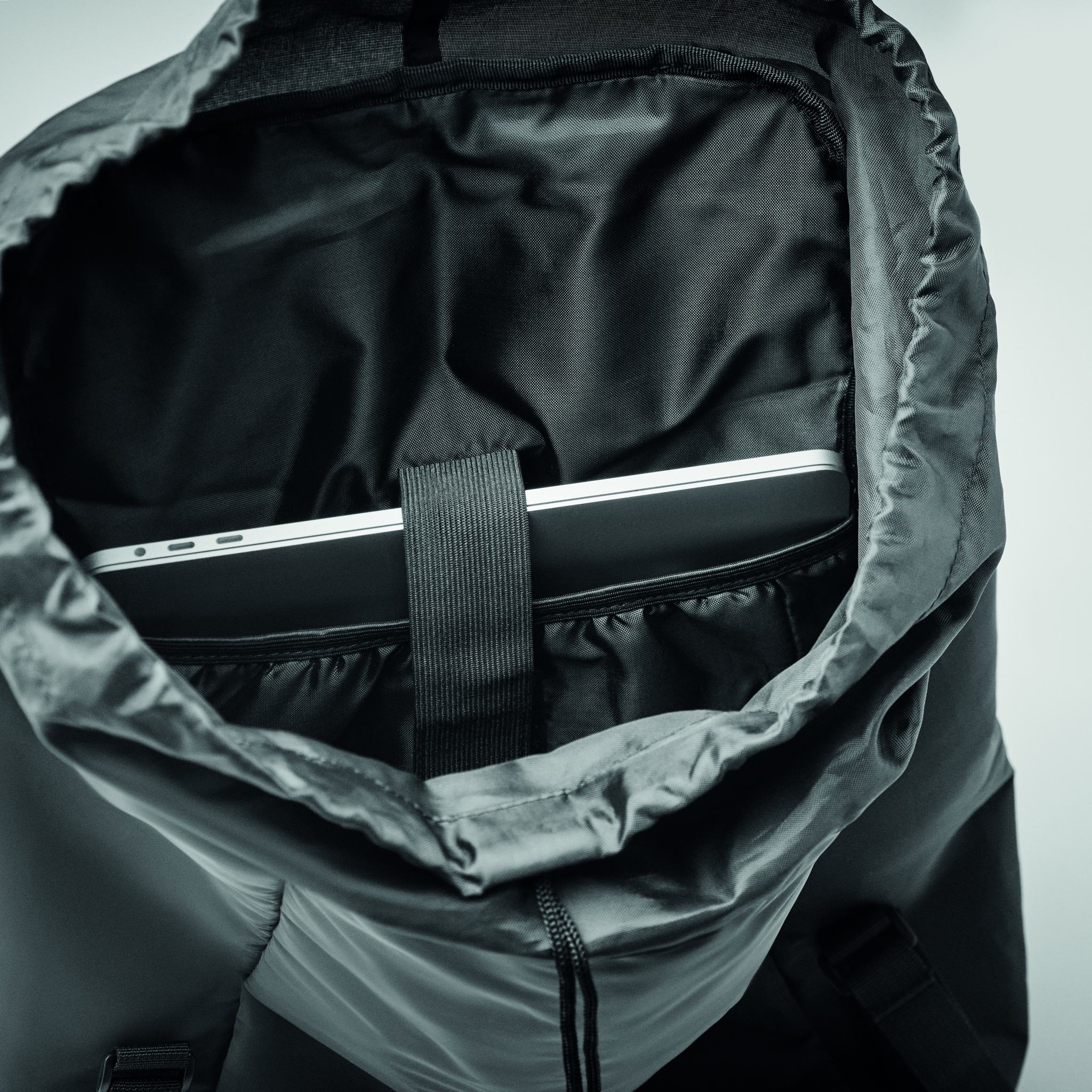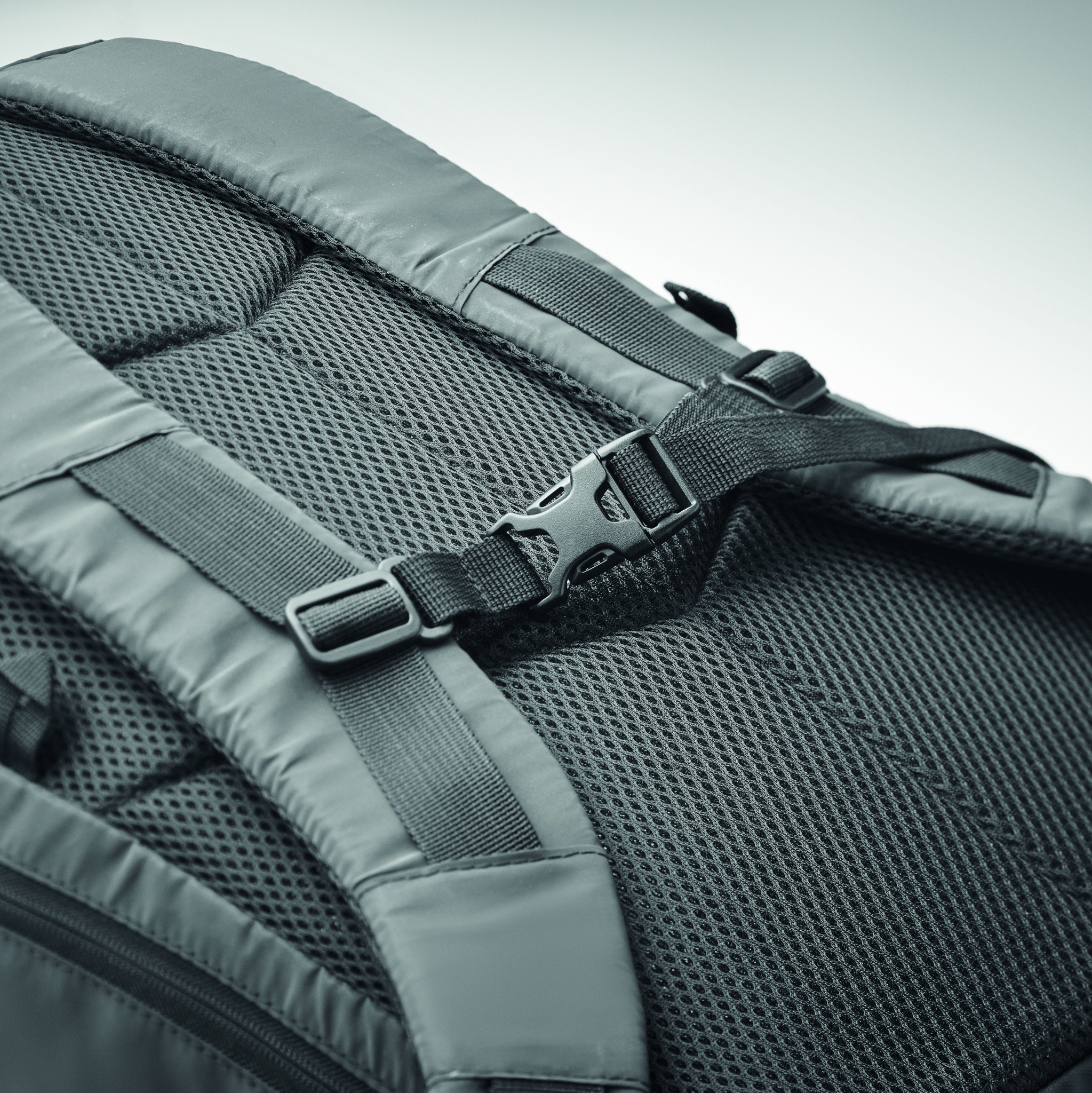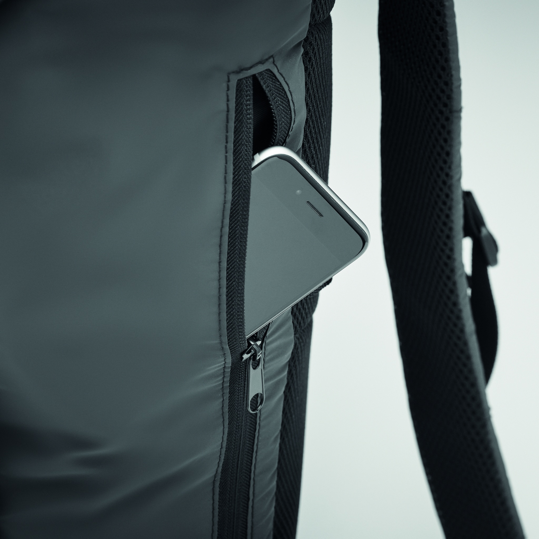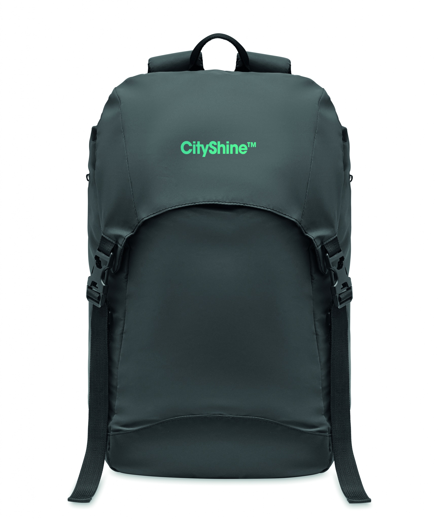 Āra mugursoma no 190T poliestera, pārklāta ar atstarojošām granulām. Sānos ārējā kabata ar rāvējslēdzēju un polsterēta mugura, iekšējā odere ar auklas aizdari. Viens liels polsterēts iekšējais klēpjdatora nodalījums. Tam ir regulējamas polsterētas plecu siksnas un regulējama krūšu un vidukļa siksna ar sprādzes aizdari. Ūdens atgrūdošs.