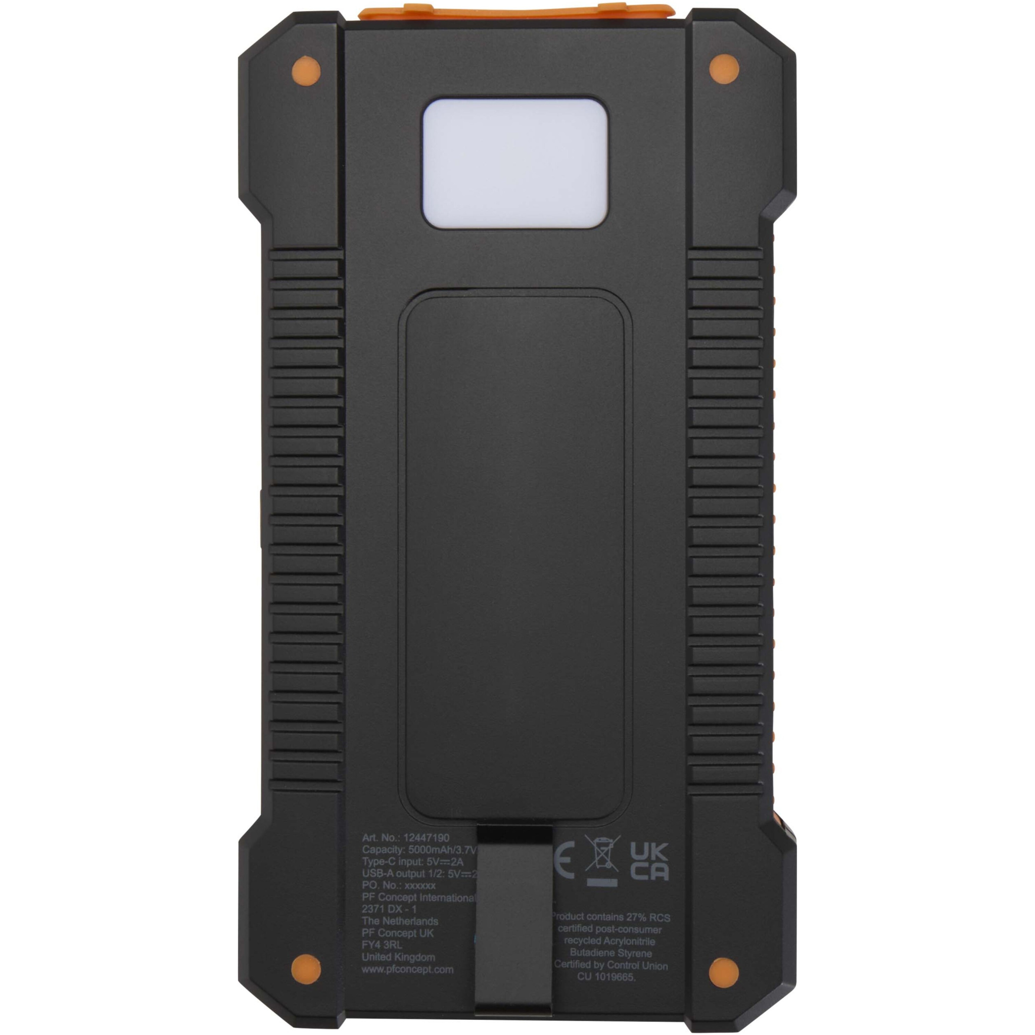 Портативное зарядное устройство Altair на солнечной батарее емкостью 5000 мАч, изготовленное из переработанной пластмассы, отличается долговечностью и удобством. Оно оснащено двумя выходными портами USB-A и входным/выходным портом Type-C для гибких возможностей зарядки. Имеет прочный корпус, съемный зажим для легкого крепления, встроенный фонарик и разъемы, надежно скрытые за силиконовой заглушкой. Благодаря возможности зарядки от солнца и светодиодному индикатору, показывающему уровень заряда, это портативное зарядное устройство станет идеальным спутником во время приключений на природе.