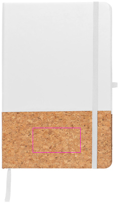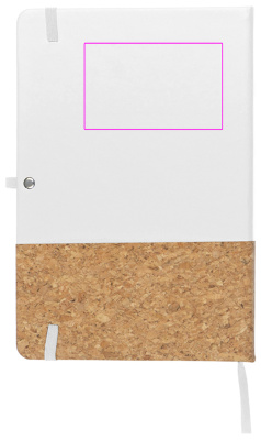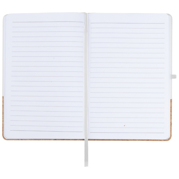 Блокнот формата А5 с 160 линованными страницами и обложкой из ПУ-пробки, закладкой, петлей для шариковой ручки и эластичной застежкой. Мы напечатаем ваш логотип спереди.