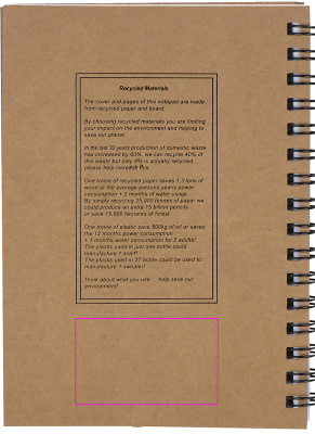 Блокнот из переработанного картона со 120 страницами из переработанной бумаги и шариковой ручкой с синими чернилами. Мы напечатаем ваш логотип на обложке.