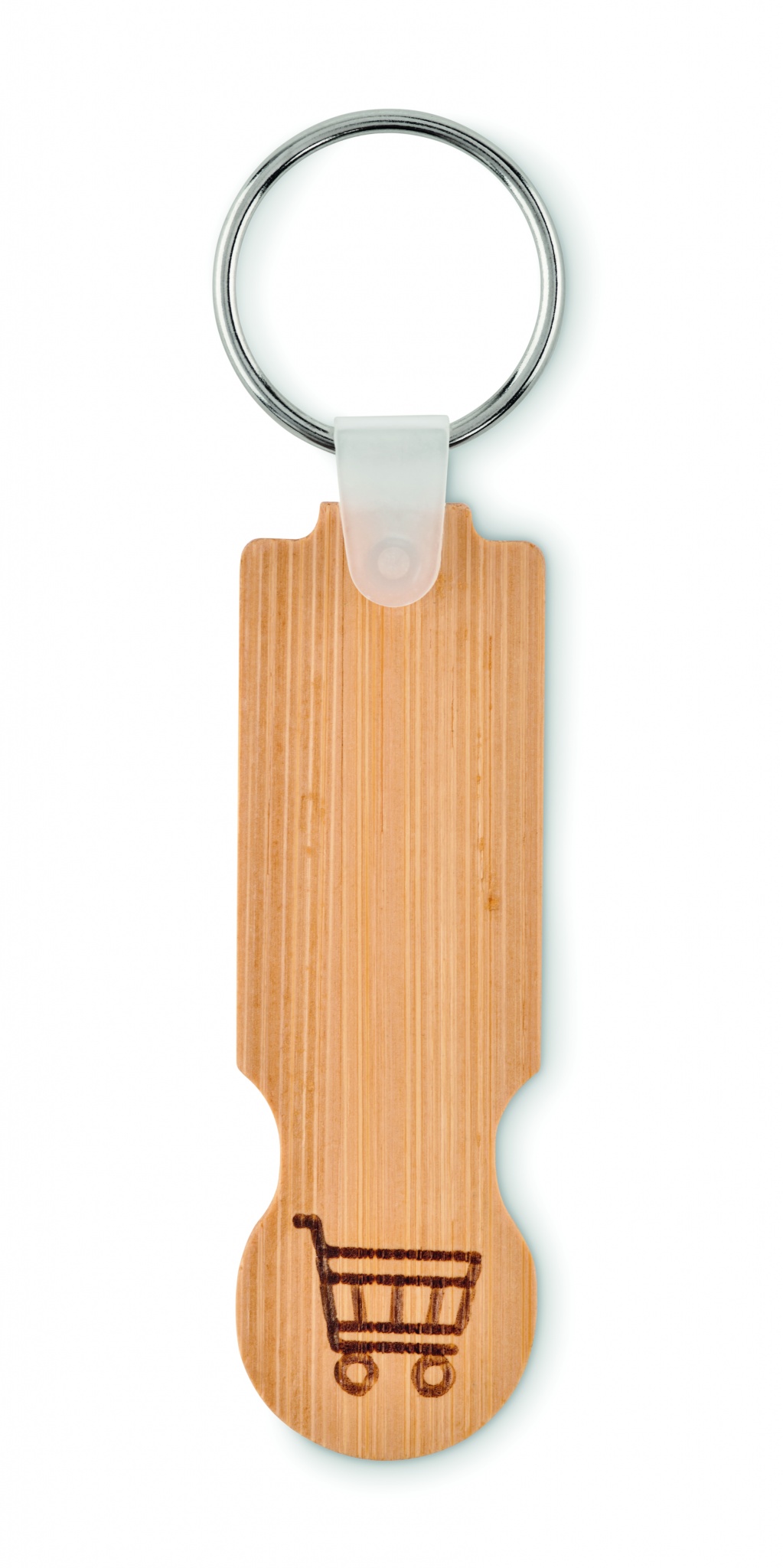 Бамбуковый брелок для ключей с жетоном формата евро.