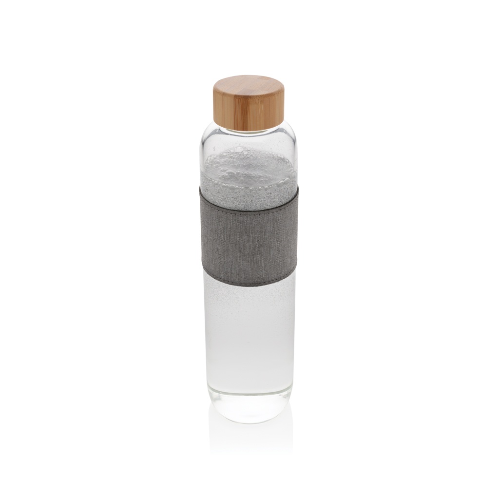 Бутылка из ударопрочного боросиликатного стекла с бамбуковой крышкой, прозрачный